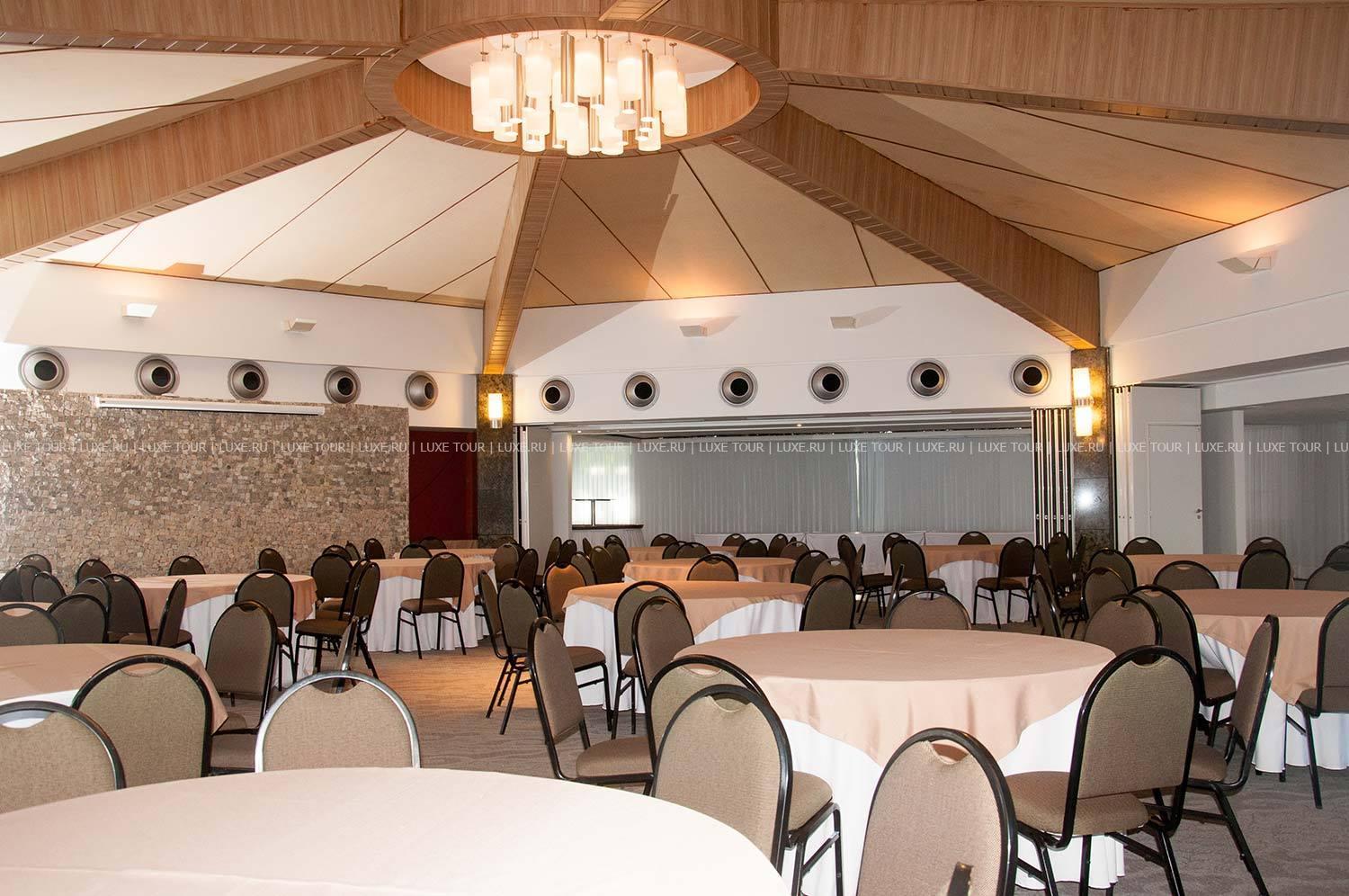 4 конференц-зала (вместимостью от 10 до 500 человек), экскурсионное бюро, аптека, парикмахерская, прокат автомобилей.