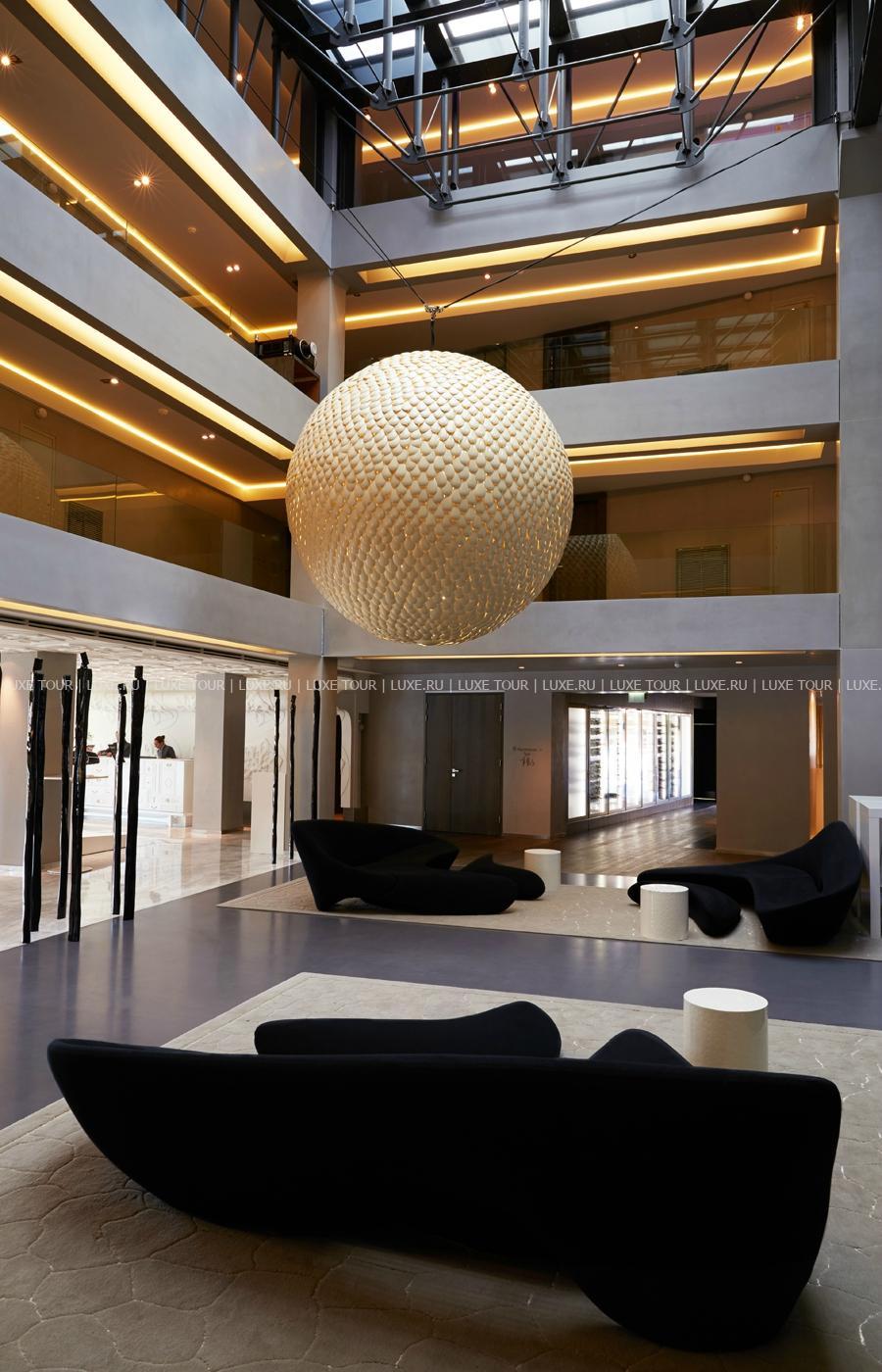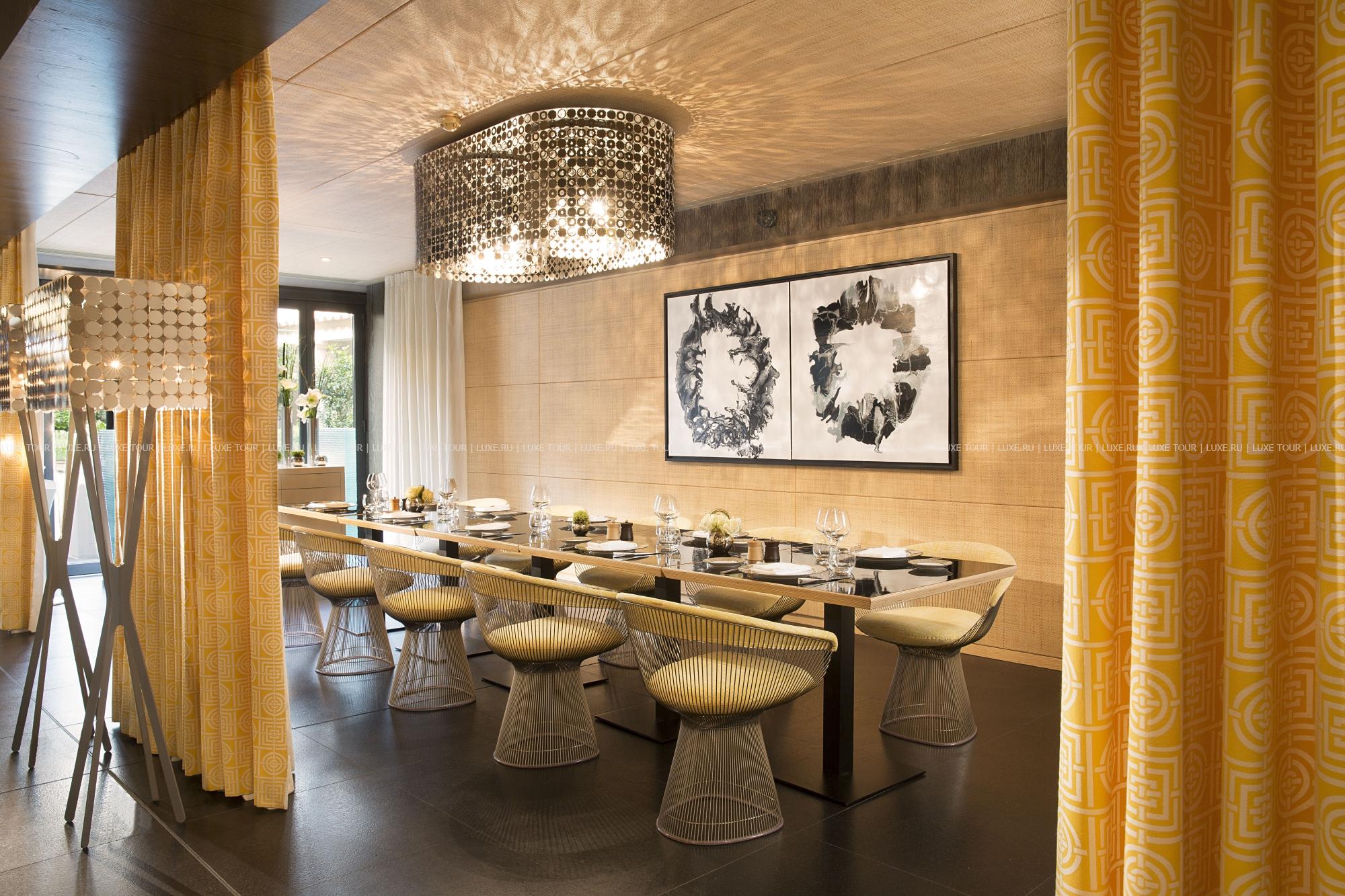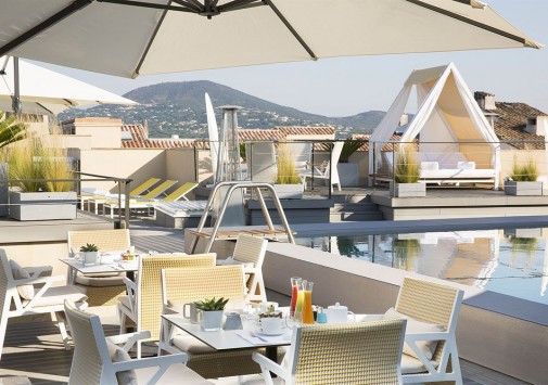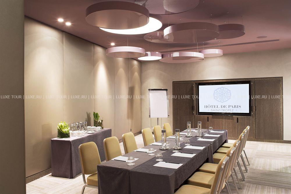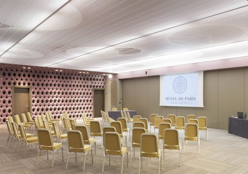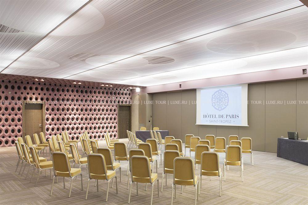 Hôtel de Paris — Saint Tropez, излюбленное место отдыха знаменитостей 60-х годов прошлого века, сегодня предлагает гостям роскошный современный декор, сочетающий яркие цветовые и графические решения с первоклассной отделкой из натуральных материалов. К услугам гостей: комфортабельные номера, где чёткие геометрические линии оранжевых, лиловых, голубых и коричневых оттенков, создают особый контраст с современной белой лакированной мебелью, белоснежными деревянными, каменными или паркетными полами, отличный СПА-центр, где предлагается широкий спектр услуг по уходу за телом и лицом с использованием косметики Clarins и My Blend, открытый бассейн уникального дизайна с прозрачным дном, расположенный на крыше отеля, на высоте 15 метров от пола, конференц-залы общей площадью 340 м2, которые идеальное подойдут как для частных, так и для корпоративных мероприятий, 2 ресторана, бар и кафе, предлагающие богатый выбор блюд средиземноморской и японской кухни, а также выбор эксклюзивных вин из частной коллекции отеля. Гости также могут насладиться прогулкой или трапезой в очаровательной обстановке внутреннего двора отеля.