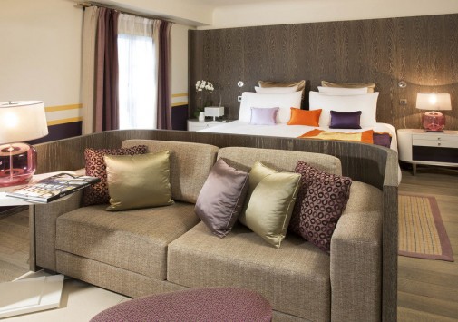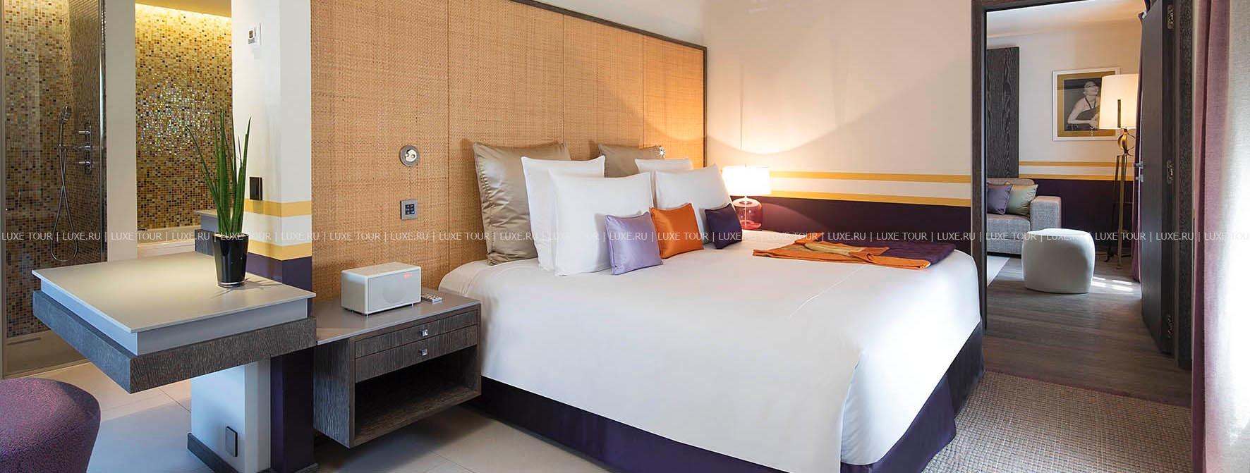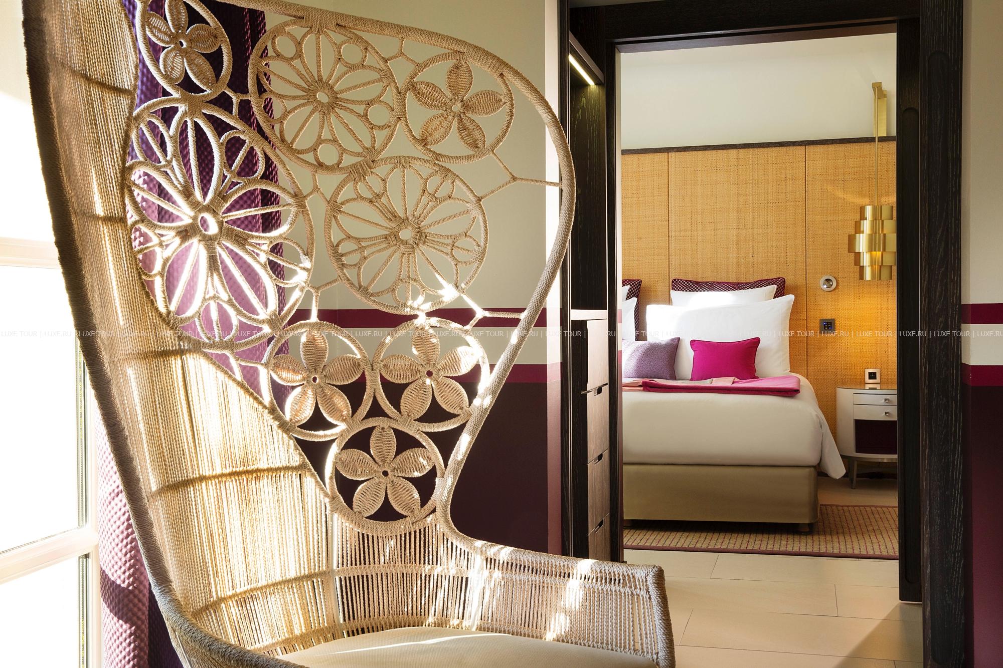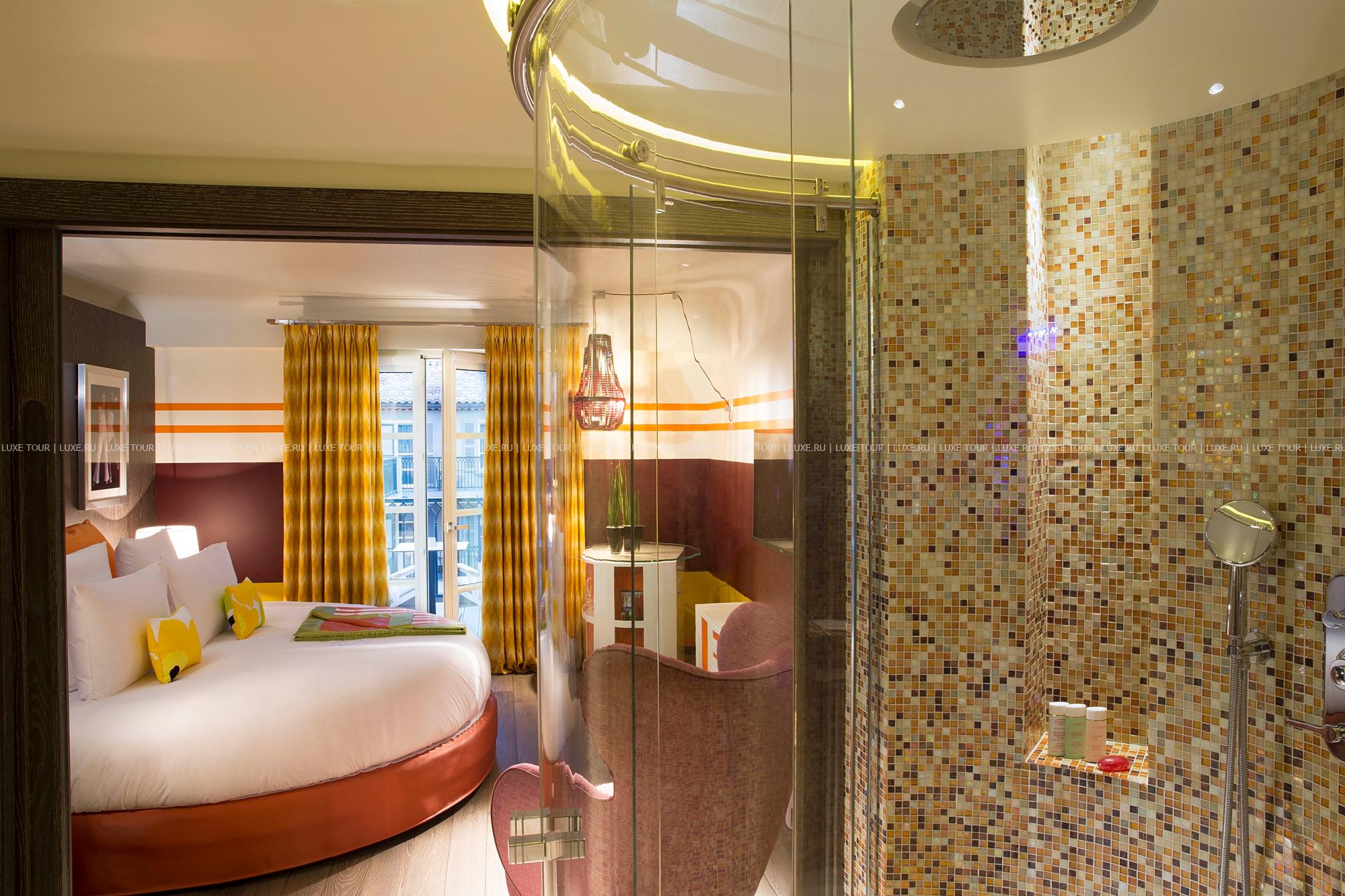 Hôtel de Paris — Saint Tropez, излюбленное место отдыха знаменитостей 60-х годов прошлого века, сегодня предлагает гостям роскошный современный декор, сочетающий яркие цветовые и графические решения с первоклассной отделкой из натуральных материалов. К услугам гостей: комфортабельные номера, где чёткие геометрические линии оранжевых, лиловых, голубых и коричневых оттенков, создают особый контраст с современной белой лакированной мебелью, белоснежными деревянными, каменными или паркетными полами, отличный СПА-центр, где предлагается широкий спектр услуг по уходу за телом и лицом с использованием косметики Clarins и My Blend, открытый бассейн уникального дизайна с прозрачным дном, расположенный на крыше отеля, на высоте 15 метров от пола, конференц-залы общей площадью 340 м2, которые идеальное подойдут как для частных, так и для корпоративных мероприятий, 2 ресторана, бар и кафе, предлагающие богатый выбор блюд средиземноморской и японской кухни, а также выбор эксклюзивных вин из частной коллекции отеля. Гости также могут насладиться прогулкой или трапезой в очаровательной обстановке внутреннего двора отеля.