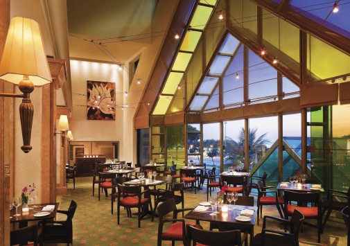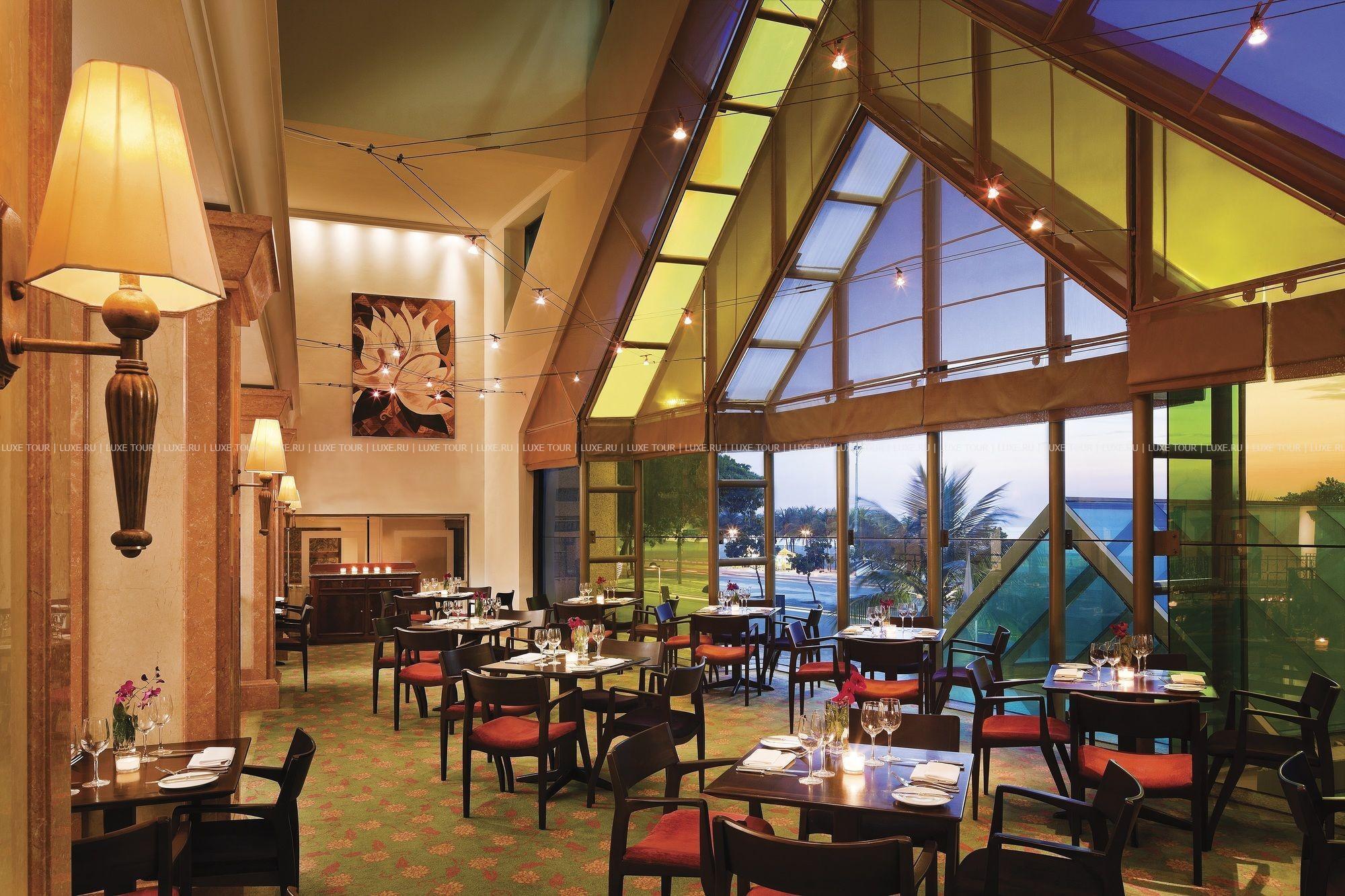 В утонченном ресторане Terraneo с панорамными витражными окнами сервированы блюда средиземноморской кухни.