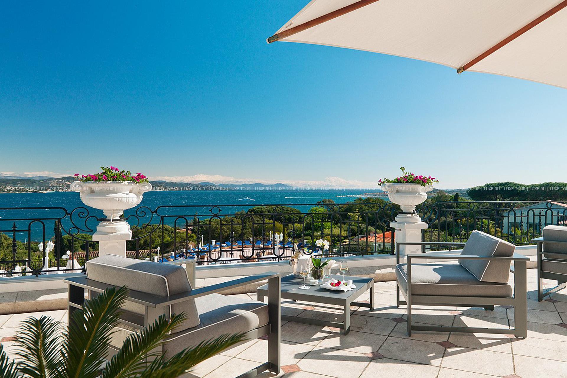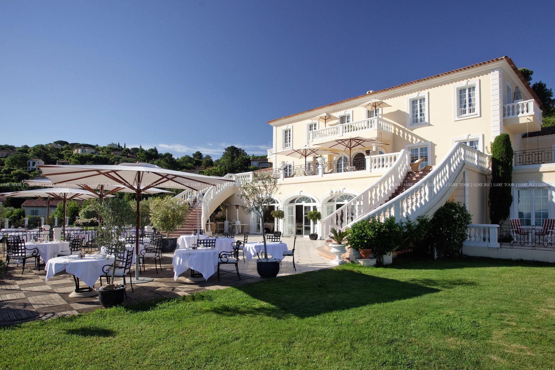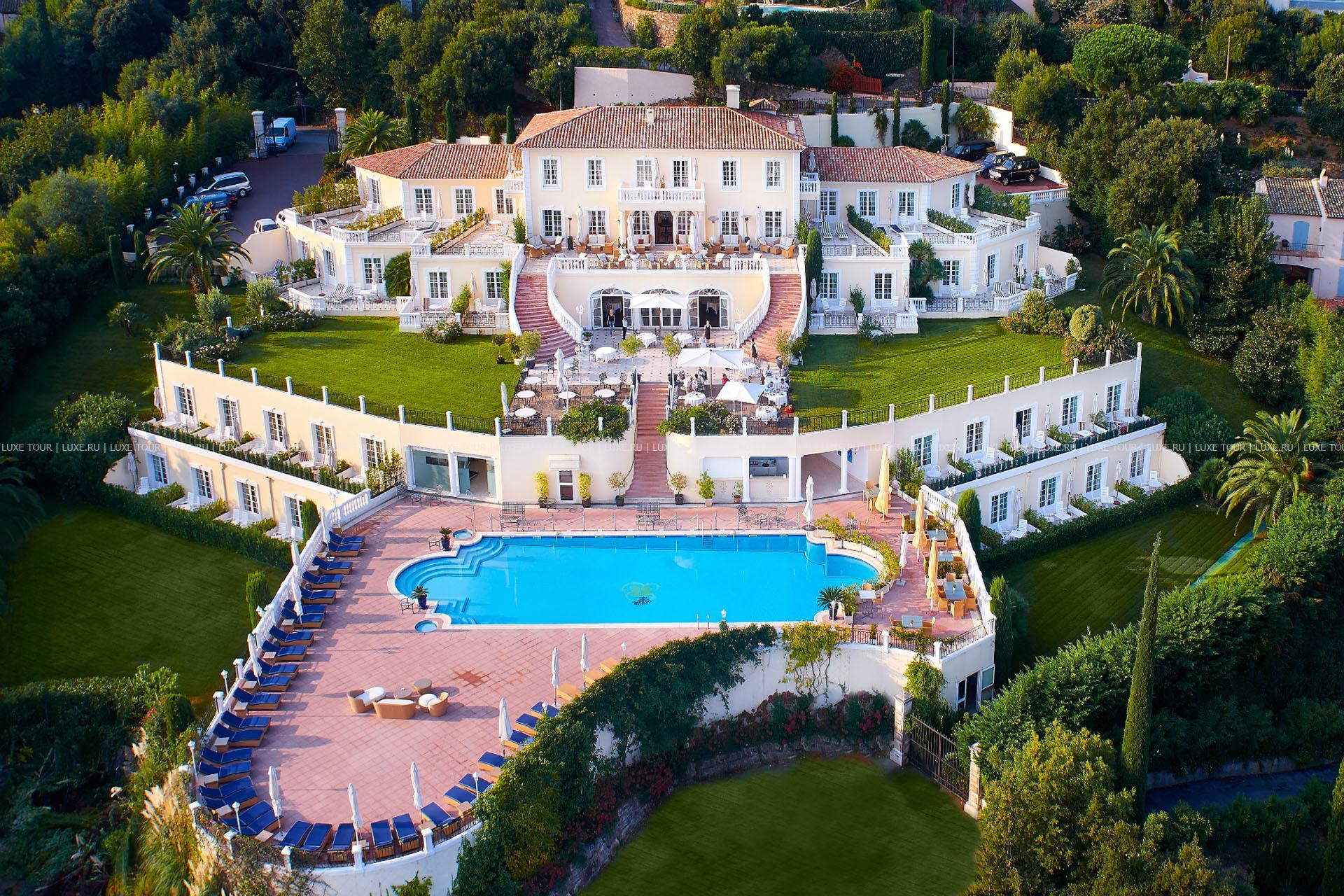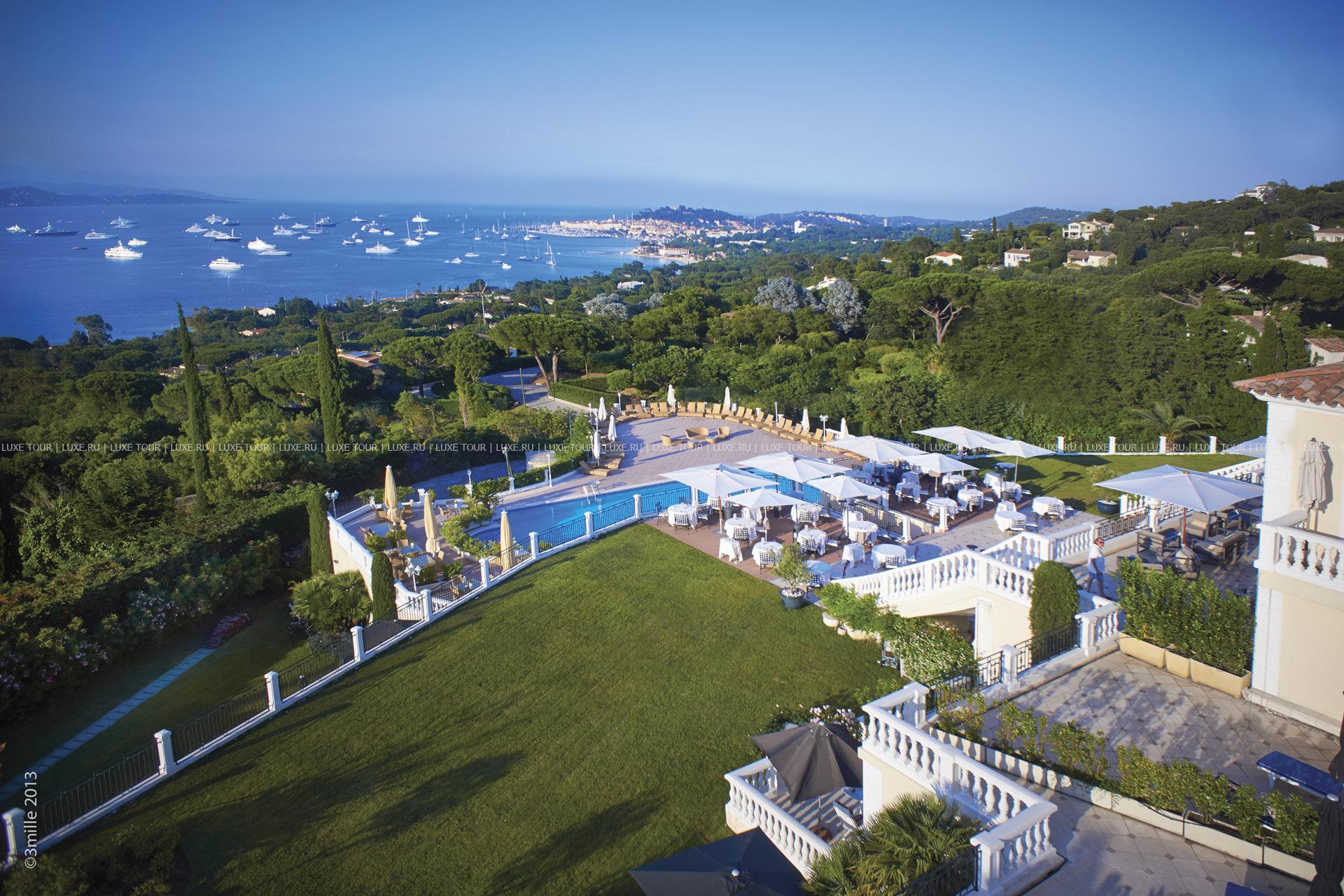 Отель расположен в местечке Гассэн, в 5 минутах езды от курорта Сен-Тропе, в районе, где находятся частные виллы, на участке побережья под названием Корсиканский Лазурный берег (Côte d'Azur Corse). Возвышающийся среди упоительных пейзажей южной Франции элегантный силуэт отеля с террасами и широкими лестницами, черепичной крышей, белоснежными балюстрадами и стенами цвета мимозы эффектно смотрится между синевой неба и лазурью моря. Великолепие правильных геометрических линий и классический шарм оттеняет пышная зелень окружающей сосновой рощи. Неоспоримое очарование южной Франции и идиллическая панорама, открывающаяся из окон, получают свое гармоничное продолжение в декоре комнат, использующем традиционные для этого региона ткани с яркими традиционными орнаментами. Выступающие с ними в одном стройном ансамбле изящная мебель, мягкие ковры, живописные полотна и броские цветочные композиции создают аристократическую атмосферу загородного дома, поражая гостей необычайным уютом и особенной красотой. Также в комплекс гостиницы входят ресторан, бар, большой открытый бассейн, солярий и тренажерный зал, а также салон красоты косметической фирмы La Prairie.