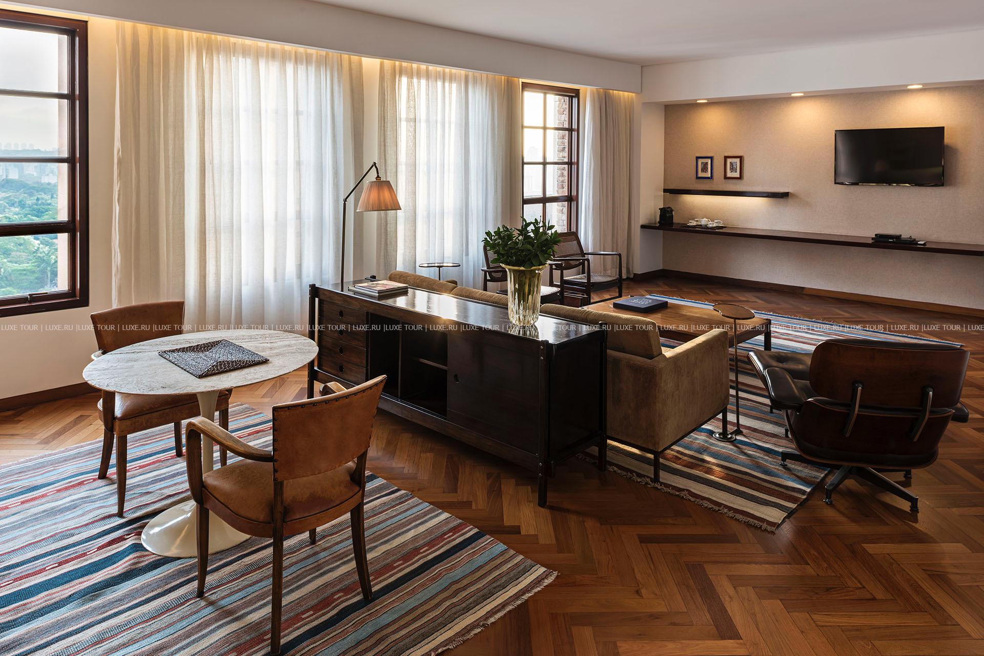 В историческом районе Сан-Паулу, в нескольких шагах от престижных торговых кварталов возвышается многоэтажное здание Fasano Sao Paulo – одного из самых очаровательных отелей в городе, владельцами которого является семья знаменитых рестораторов Фазано. Сегодня представителю четвертого поколения семьи, Рожерио Фазано, удалось реализовать давнюю мечту и открыть фешенебельный отель с рестораном Fasano, считающимся одним из лучших итальянских ресторанов в Южной Америке. Превосходной кухне не уступают шикарные интерьеры отеля. Известные бразильские архитекторы Исай Вейнфельд и Марсио Коган искусно соединили оригинальный современный дизайн и классические элементы стиля 1930-х годов, такие как, фасад, облицованный английским кирпичом, или стены из травертина. Гостей ждут элегантные номера и ряд первоклассных услуг, включая стильный бар Baretto, где выступают джазовые музыканты, великолепный СПА-центр с бассейном и панорамным видом на город, и современно оснащенный бизнес-центр. Fasano Sao Paulo предлагает отличный сервис и изысканный европейский шик.