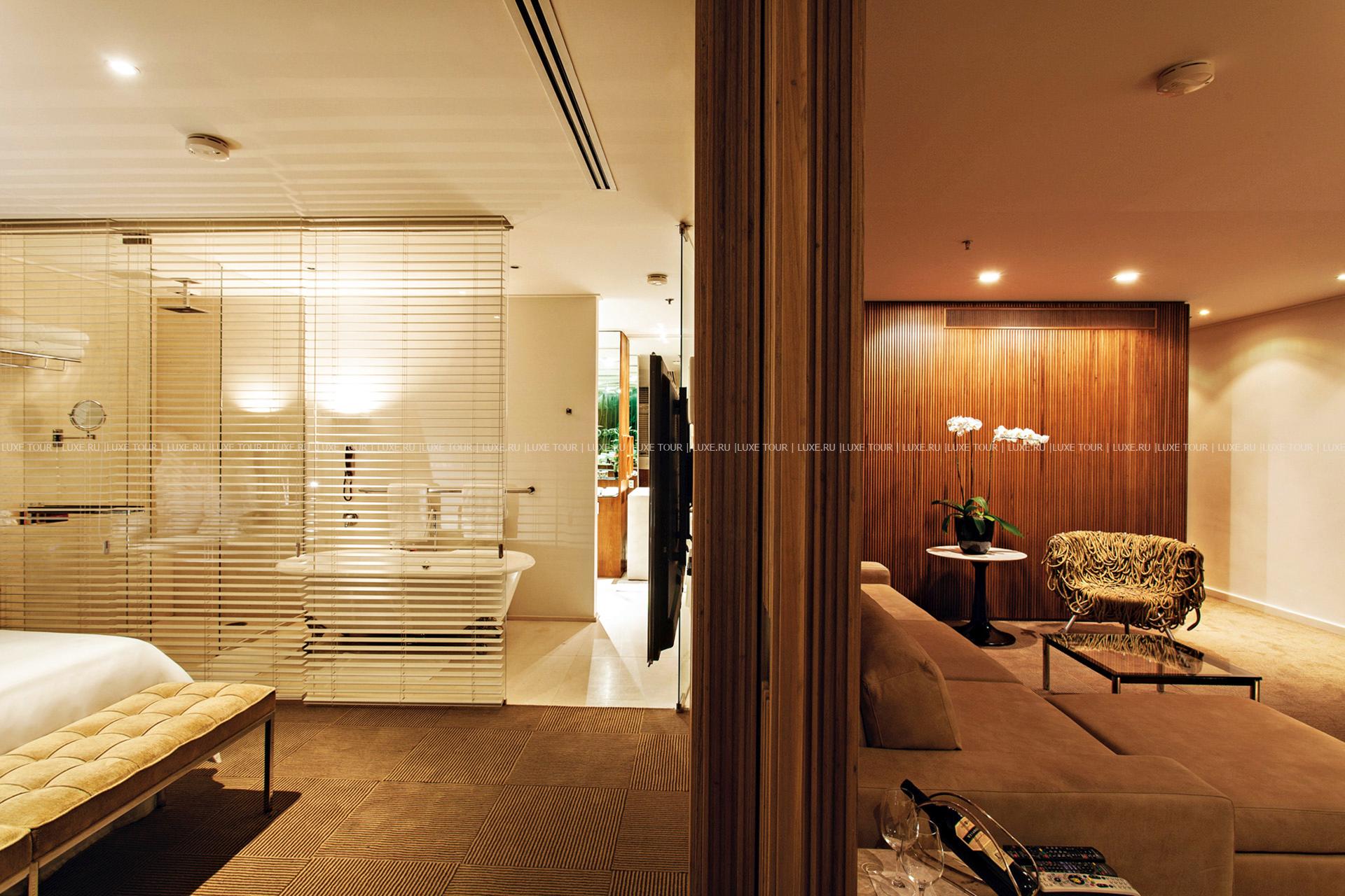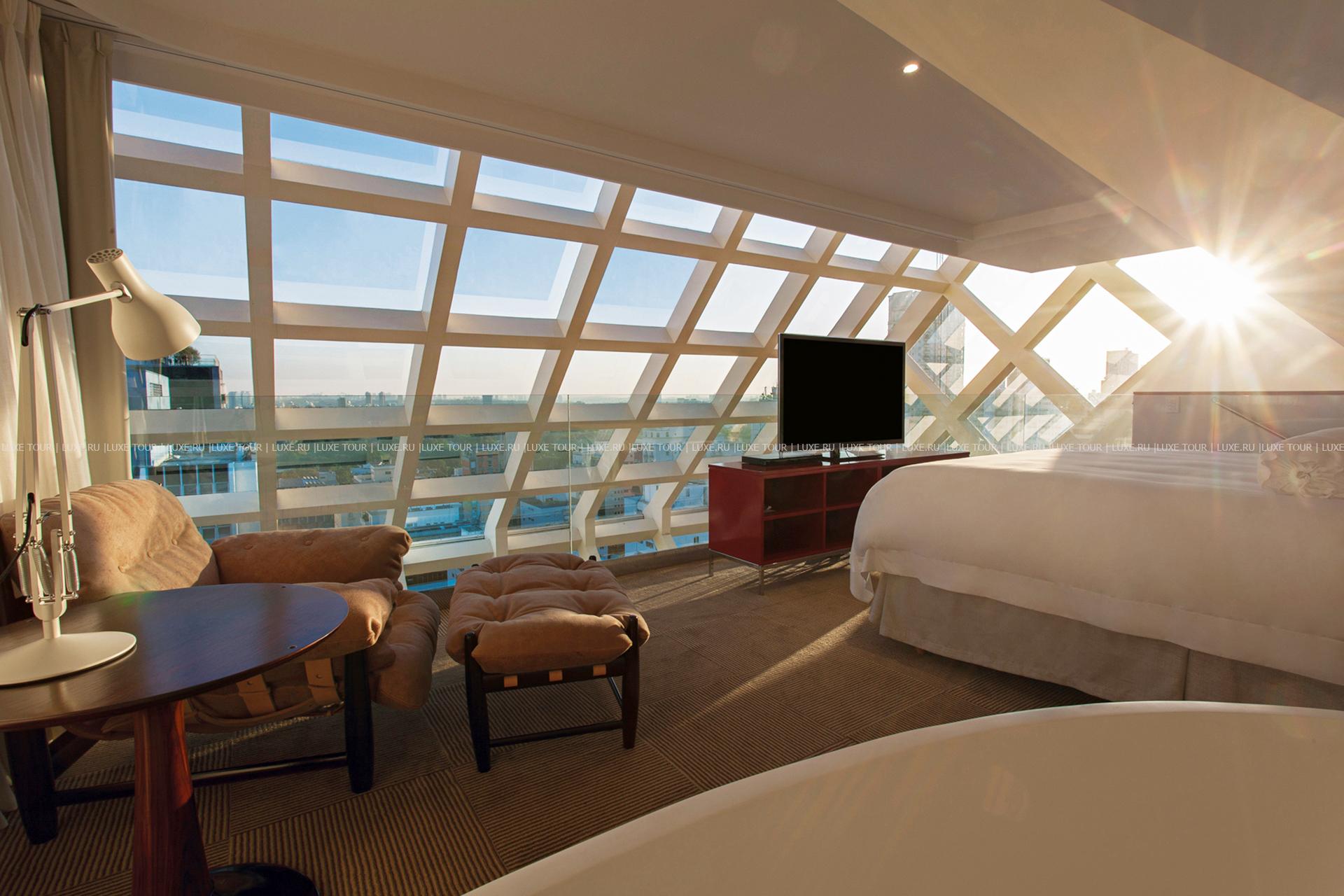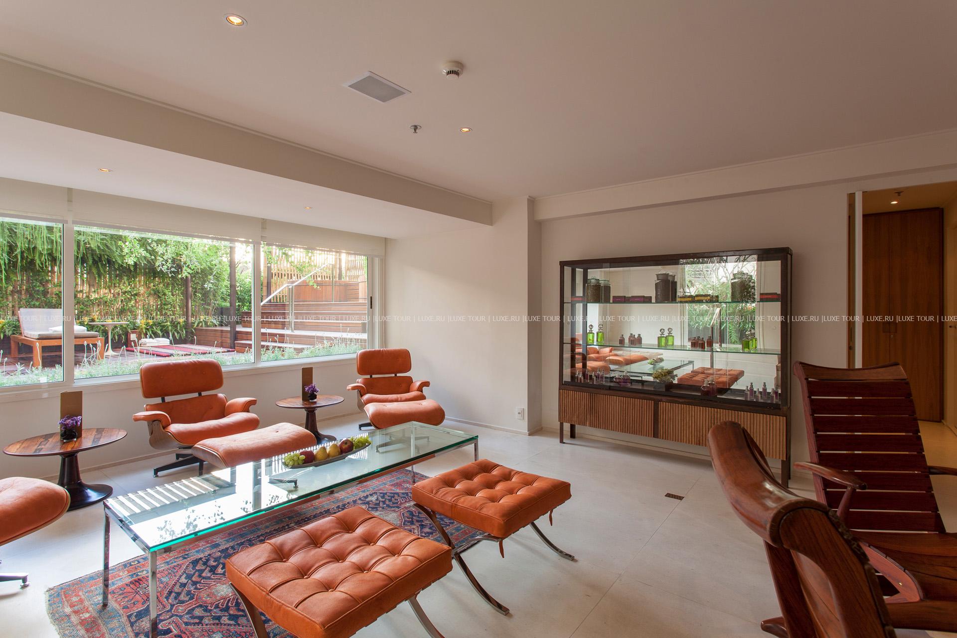 Роскошный Hotel Emiliano, Сан-Паулу, расположен в оживленном районе Jardins, рядом со знаменитым бутиками Louis Vuitton, Giorgio Armani и Christian Dior, художественными галереями, ресторанами и по праву считается одним из лучших отелей Сан-Паулу. Светло-серебристое 24-этажное здание отеля с панорамными окнами, выполнено из современных материалов в минималистском стиле, отличается четкостью геометрических линий. Стильные интерьеры Hotel Emiliano, Сан-Паулу, продолжают общую атмосферу — навесные потолки, изящная современная мебель со светлой обивкой, гладкие блестящие полы, в которых мягко отражается естественное и натуральное освещение, теплая песочная цветовая гамма, удачное сочетание стекла, дерева и металла. В ресторане и барах предложено изысканное меню современной итальянской кухни, дополненное эксклюзивными винами, шампанским и коктейлями. Также для гостей — СПА-центр, тренажерный зал, залы для банкетов и заседаний, бизнес-центр.