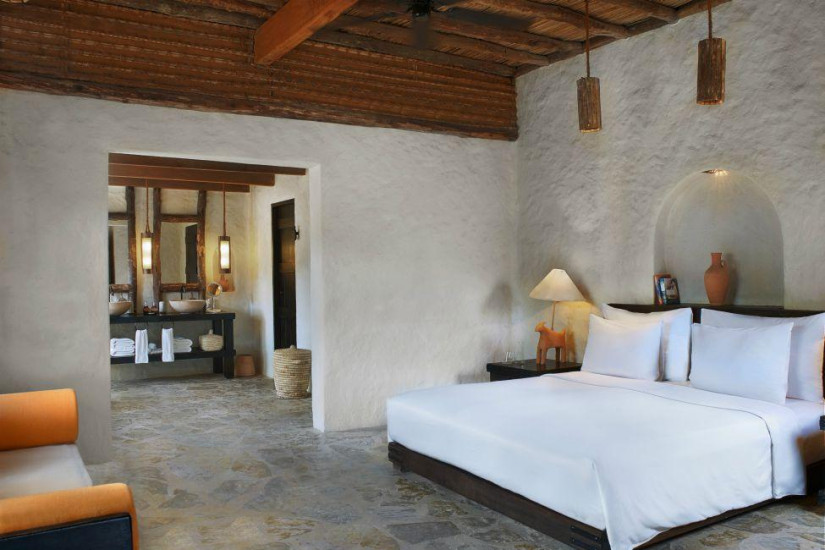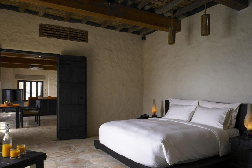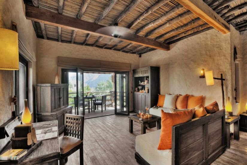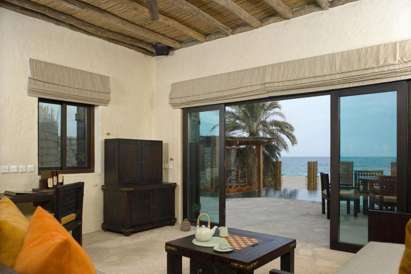 - В отеле 82 комфортабельных виллы различных категорий. В номерах – элегантные интерьеры, сочетающие современный дизайн и оманские традиции, с отделкой из дерева и тканей, оригинальными украшениями, уютными террасами с собственными бассейнами. Гостям предоставляются услуги дворецкого.