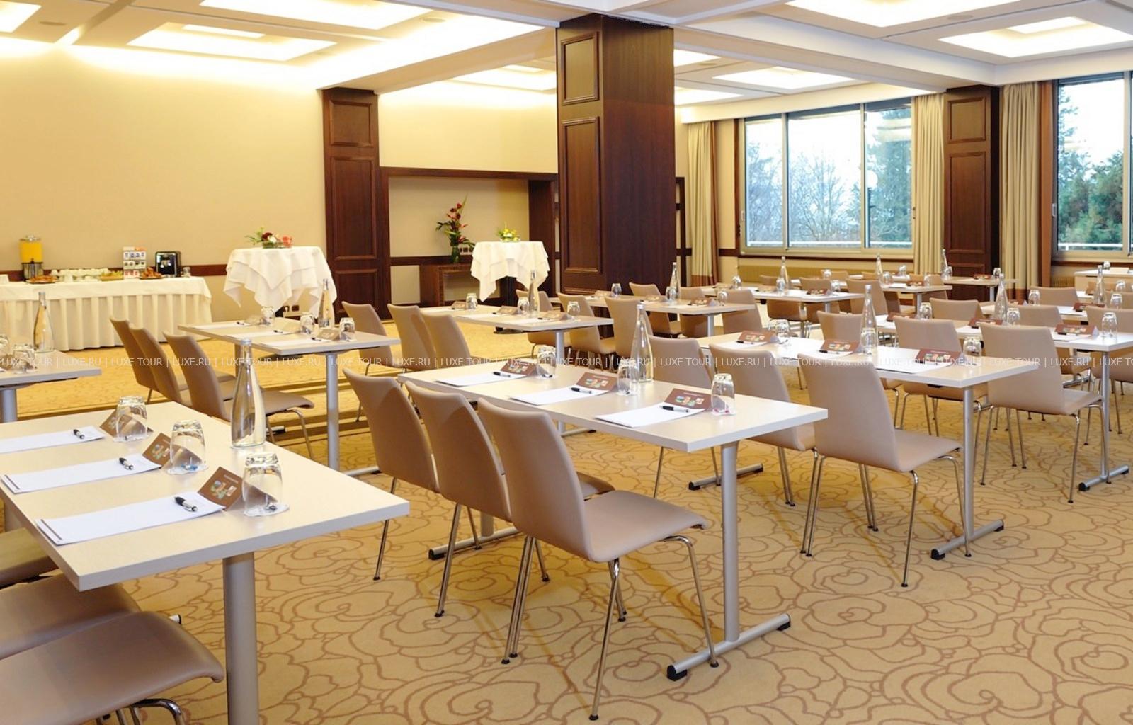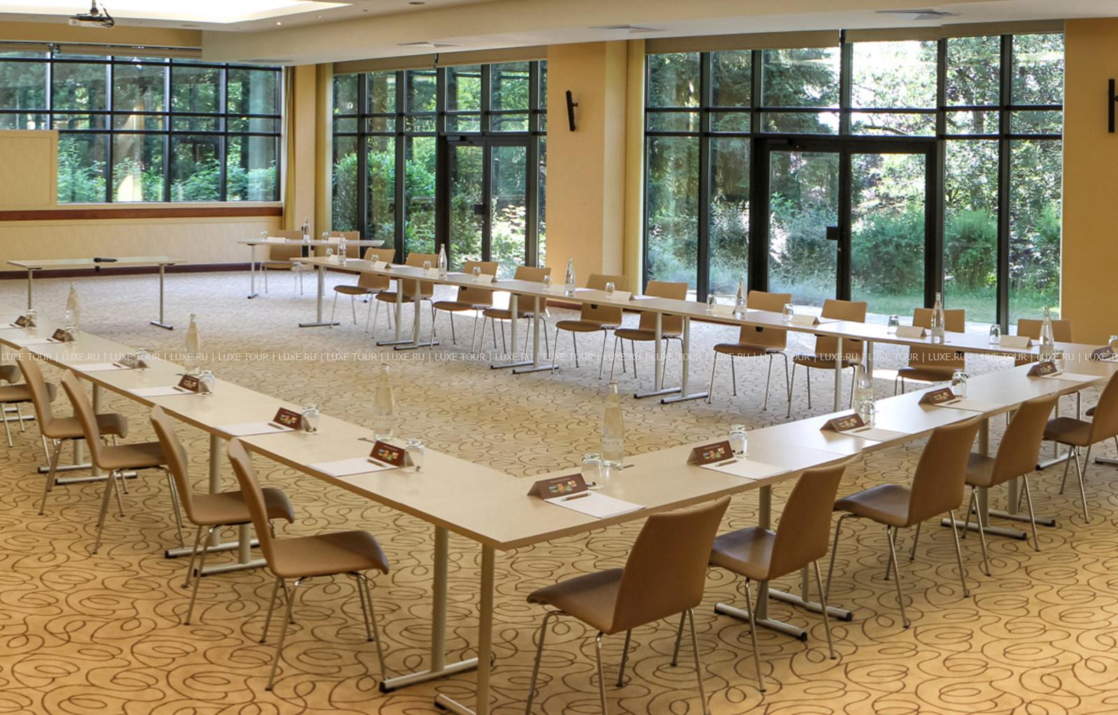 В отеле возможно проведение встреч и конференций. Для этой цели в отеле имеются 5 залов общей площадью 750 кв. м.