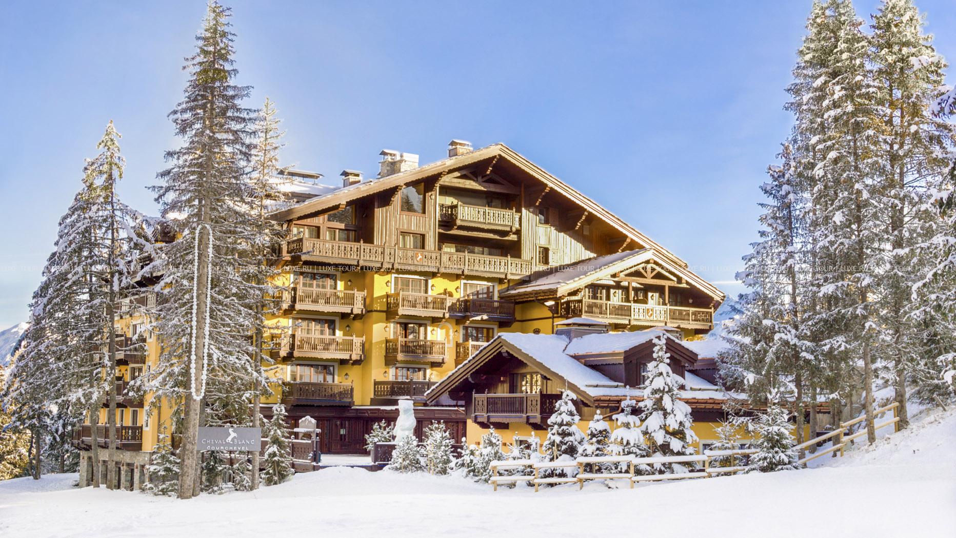 Cheval Blanc Куршевель расположен в самом сердце горного района Жардан Альпан, в элегантном здании с нарядным ярко-желтым фасадом и изящными резными балкончиками. Гостей отеля ждет уютная атмосфера альпийского шале, которая гармонично сочетается с шикарным современным дизайном и высочайшим уровнем комфорта: просторные номера с балконами и прекрасным видом на горные пейзажи, великолепный СПА центр с большим крытым бассейном и широким выбором эксклюзивных процедур, парикмахерский салон всемирно известного стилиста Джона Нолле, два изысканных ресторана, один из которых отмечен тремя «мишленовскими звездами», уютные бары, модные бутики и другие услуги класса «люкс».