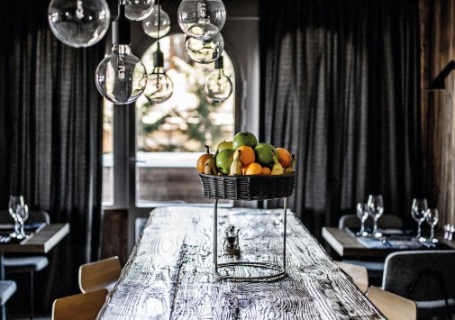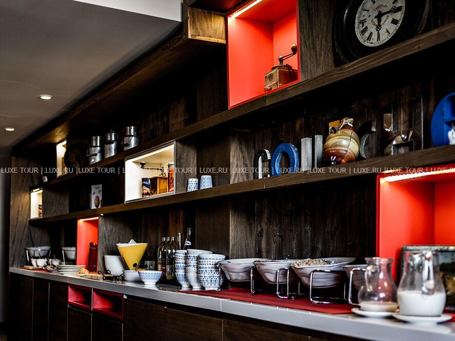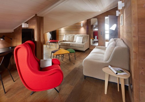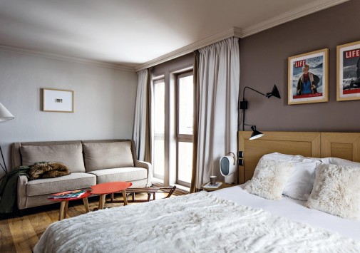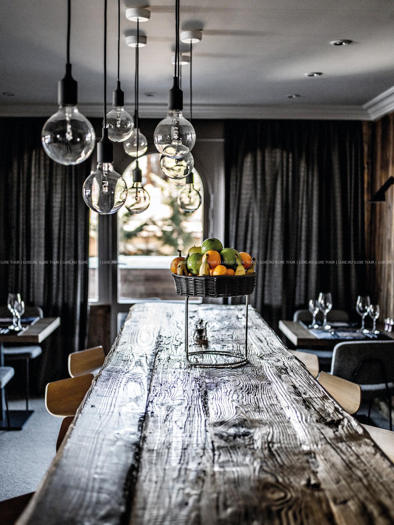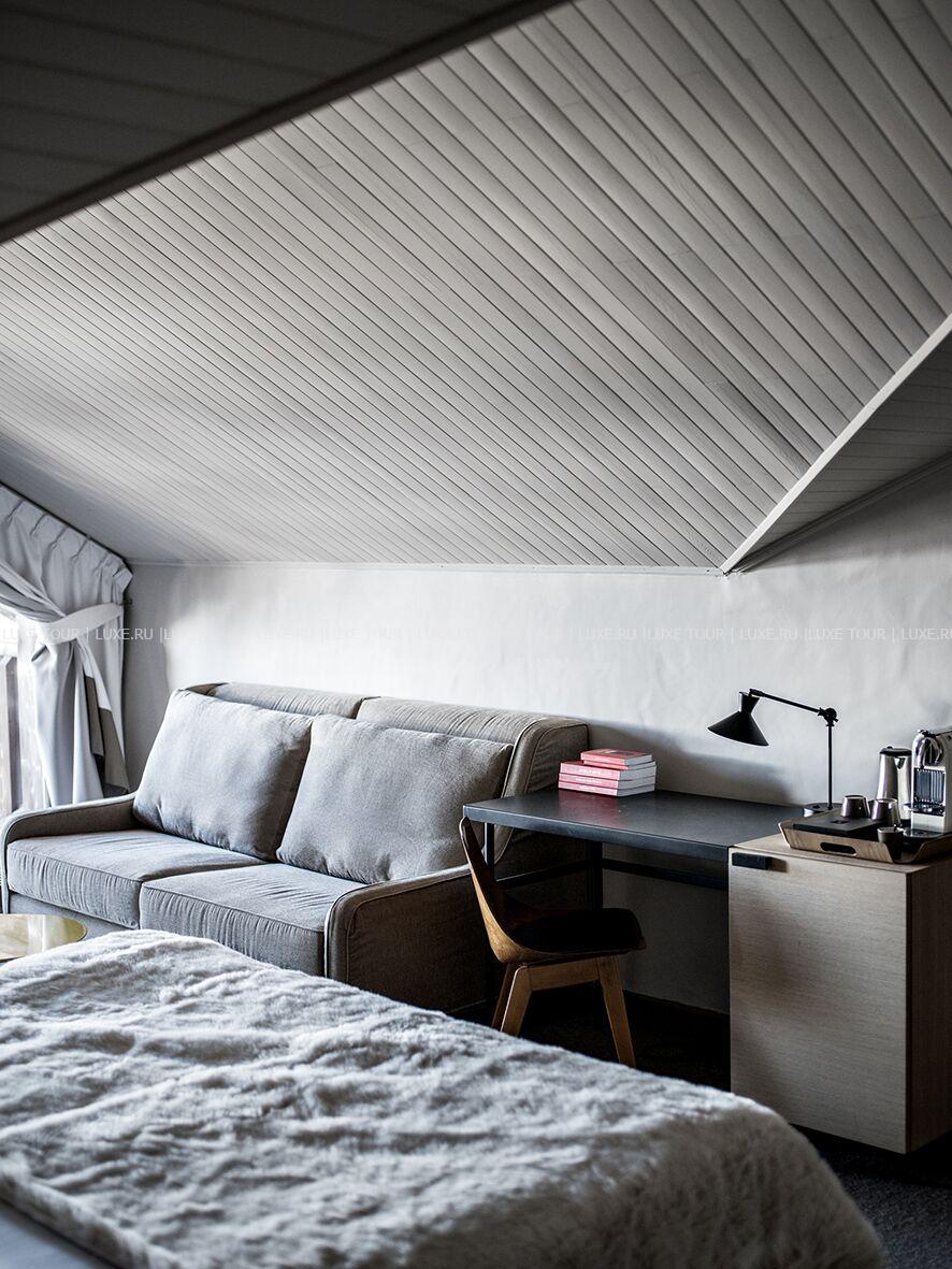 • В уютной гостиной, устроившись в просторных канапе, так и хочется сидеть часами за книжкой у камина или смаковать вино в компании друзей после активного катания.