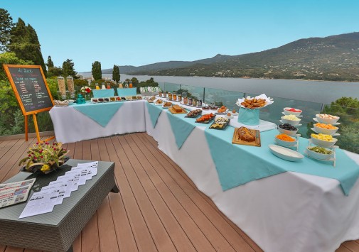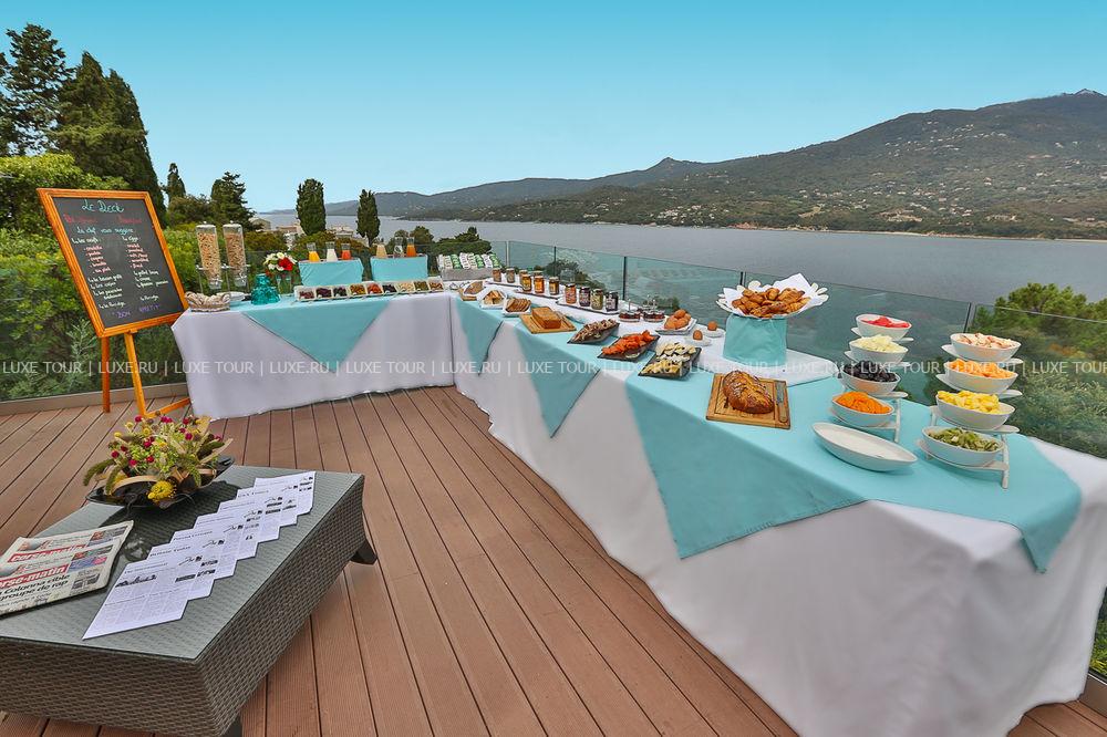 Элегантный ресторан с чудесным видом на море славится изысканными блюдами средиземноморской кухни и корсиканскими деликатесами, а также превосходными местными винами, здесь же сервируют тематические буфеты и устраиваются развлекательные программы, а в дневное время на террасе у бассейна подаются разнообразные салаты, фрукты, десерты и аппетитные блюда-гриль из свежайшей рыбы, поставляемой рыбацкой деревушки Проприано.