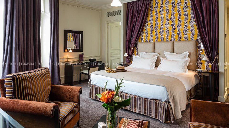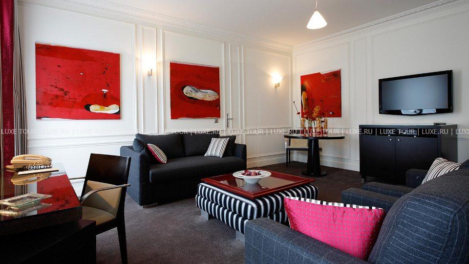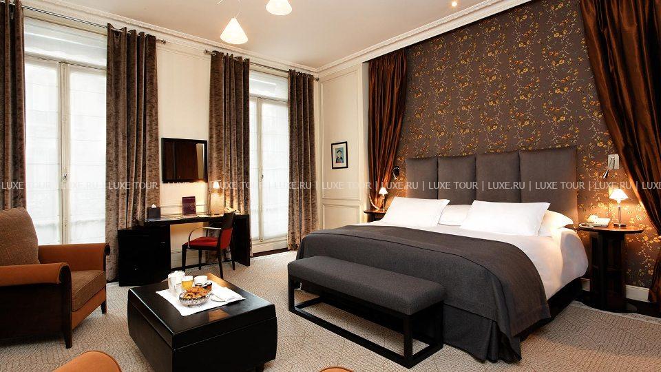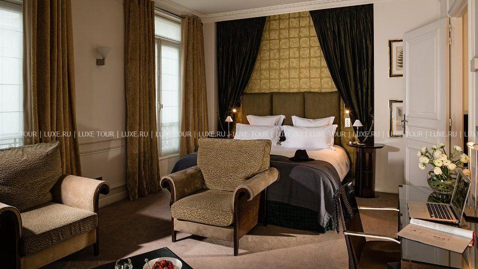 На тихой улице в самом сердце знаменитого парижского «Золотого треугольника», рядом с Елисейскими полями, модными бутиками avenue Montaigne и avenue George V, недалеко от Триумфальной арки и Эйфелевой башни, поблизости от знаменитых парижских ночных клубов Lido и Crazy Horse расположился миниатюрный дворец постройки 1883 года - La Trémoille. La Trémoille получил свое название в честь знаменитого генерала Луи де ля Тремоля, который верой и правдой служил Карлу VIII, Людовику XII и Франциску I, был дипломатом и видным политическим деятелем эпохи Ренессанса, а соотечественники называли его «рыцарем без страха и упрека». За нарядным фасадом отеля, украшенным искусной лепниной и ажурным литьем балконных перил, скрывается изысканный парижский шик: светлые тона и мягкое освещение, колонны, изящная мебель и лестница в стиле Art-Deco, зеркала и живописные полотна в золоченых рамах. В комфортабельных номерах – стильные интерьеры, сочетающие тенденции современного дизайна и традиционные классические элементы, оформленные в 30 изысканных цветовых оттенках, и отделанные оригинальными тканями – искусственным мехом, шерстью и шелком.