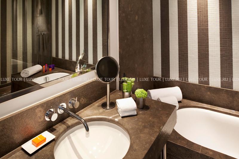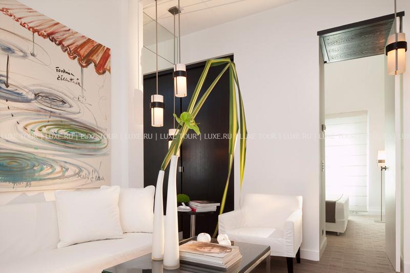 В элегантном особняке на тихой парижской улице Rue d’Artois, в самом центре французской столицы, между Елисейскими полями и Faubourg Saint Honoré, рядом с основными достопримечательностями города расположился уютный и элегантный Le A. Интерьеры этого современного комфортабельного отеля, разработанные дизайнером Фредериком Мешиш (Frédéric Mechiche), создают атмосферу частного городского дома, дополненную оригинальной авторской концепцией. Здесь всё основано на стремлении к совершенству и неординарности: белоснежные стены и удобные кресла в тон контрастируют с черным деревом и темной обивкой диванов, стены, расписанные современными художниками, освещены мягкой подсветкой, наполненное светом пространство подчеркнуто продуманностью цвета и линий. В номерах, оборудованных по последним технологиям, -стильные современные интерьеры в светлых тонах, обставленные элегантной белой мебелью, украшенные оригинальными светильниками и авангардистской живописью. В изысканном баре-гостиной, выполненном в черно-белых тонах, с уютным камином и стеклянным потолком 19 века, сервируют буфеты завтраков, в течение дня здесь предложен большой выбор различных напитков и коктейлей, кроме того, в уютной библиотеке можно почитать книги по искусству и дизайну. Le A предлагает гармоничное сочетание оригинальных дизайнерских решений, современного уютного комфорта и прекрасного расположения в самом центре Парижа.