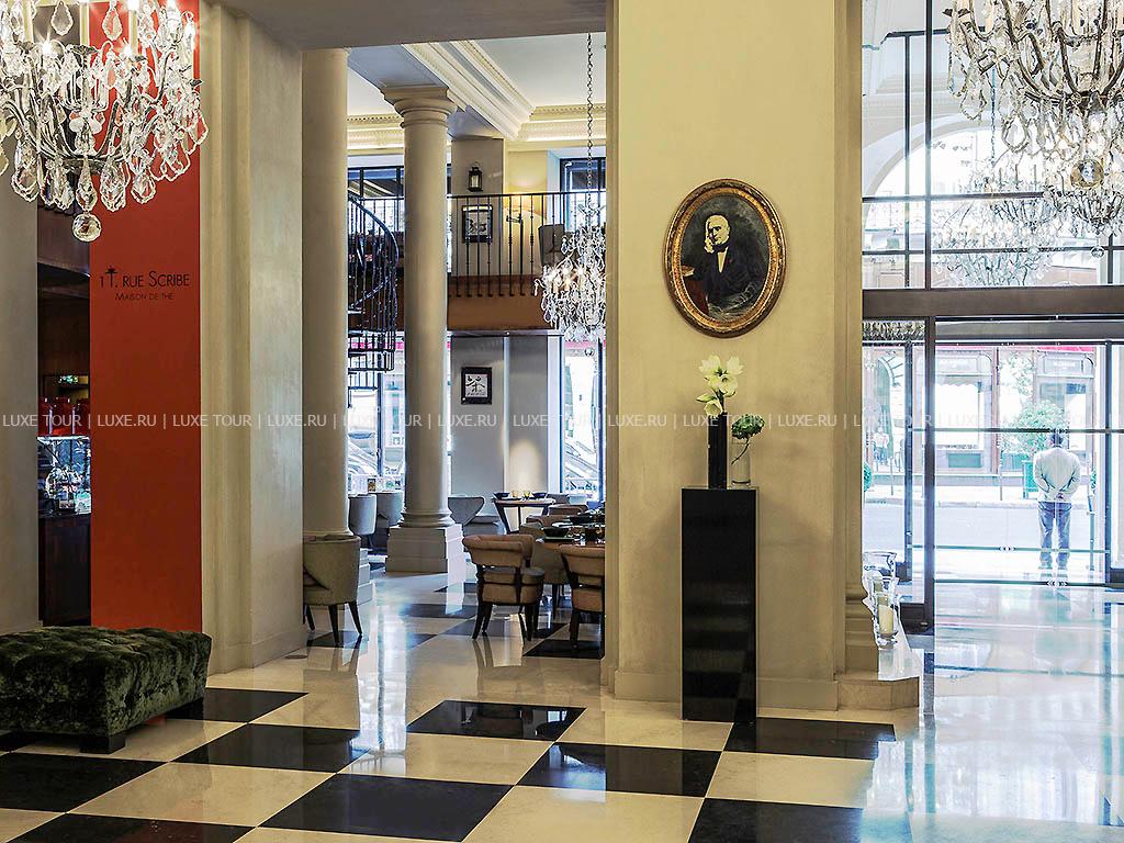 Величественное здание Scribe Paris Opera hotel by Sofitel расположено на одноименной улице, в самом центре Парижа, между зданием парижской Оперы и Вандомской площадью, рядом с основными достопримечательностями города. В 2006 году отель был полностью обновлен при участии известного французского дизайнера Жака Гранже (Grange Jacques), приобретя новый облик и бережно сохранив при этом атмосферу утонченной роскоши и богатые традиции прежних времен: величественные колонны, хрустальные люстры, дорогие ковры и антикварные произведения искусства гармонично сочетаются с современными дизайнерскими решениями и технологиями 21 века. В комфортабельных номерах – элегантные классические интерьеры в пастельных тонах, обставленные изящной мебелью и украшенные коврами, красиво драпированными шторами и изысканными элементами декора, из номеров открывается прекрасный вид на исторический центр Парижа. В отеле открыт Оздоровительный/СПА Центр с сауной, турецкой баней, джакузи, тренажерным залом, а также 3 процедурными кабинетами, предлагающими широкий спектр процедур и программ по уходу за здоровьем и внешностью, включая использование методик и косметики знаменитой линии Lancôme. В элегантном ресторане Café Lumiere подаются изысканные блюда французской кухни, приготовленные под руководством шеф-повара Франка Шарпентье. В уютноq гостиной с библиотекой подаются легкие закуски, выпечка и кондитерские изделия, предложен большой выбор превосходных вин и шампанского, а вечерами здесь звучит живая музыка.