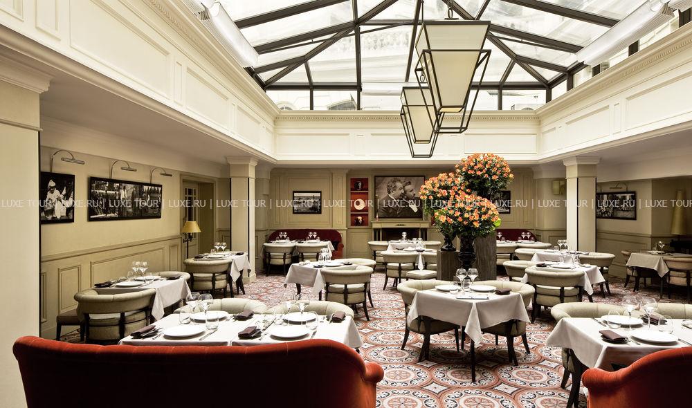 В элегантном ресторане Café Lumiere, увенчанном стеклянным куполом, подаются изысканные блюда французской кухни, приготовленные под руководством шеф-повара Франка Шарпентье (Franck Charpentier).