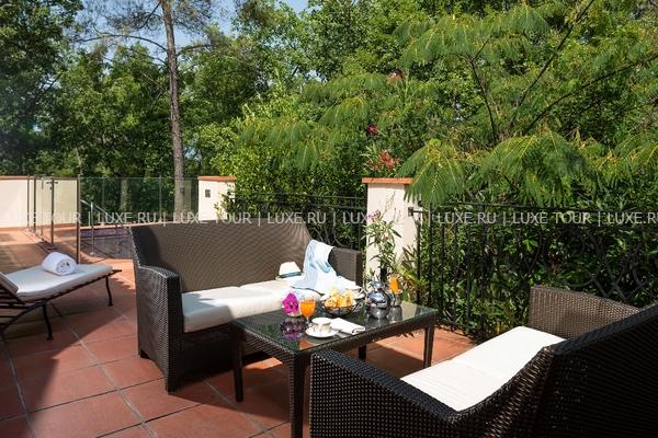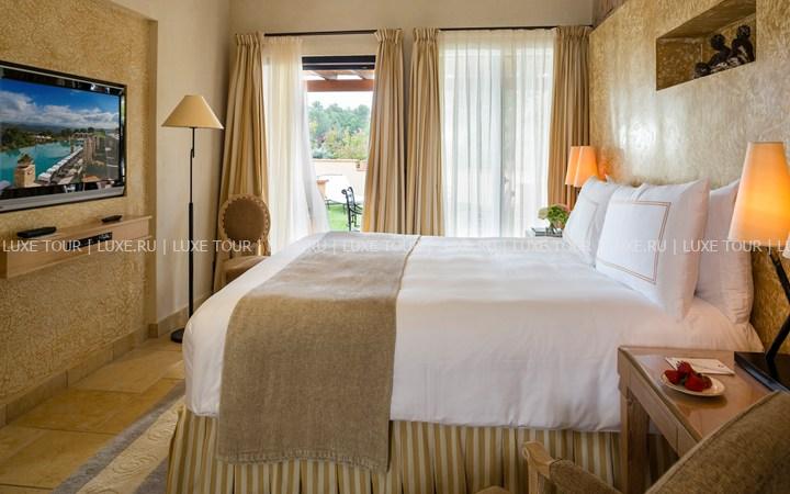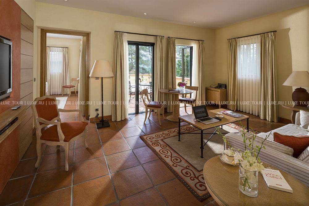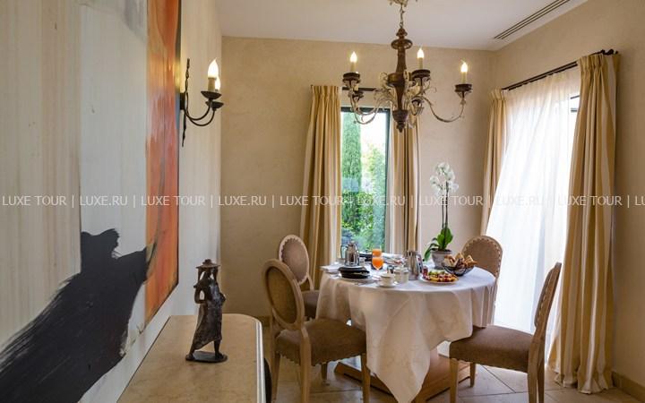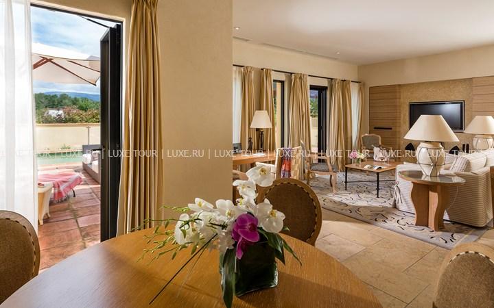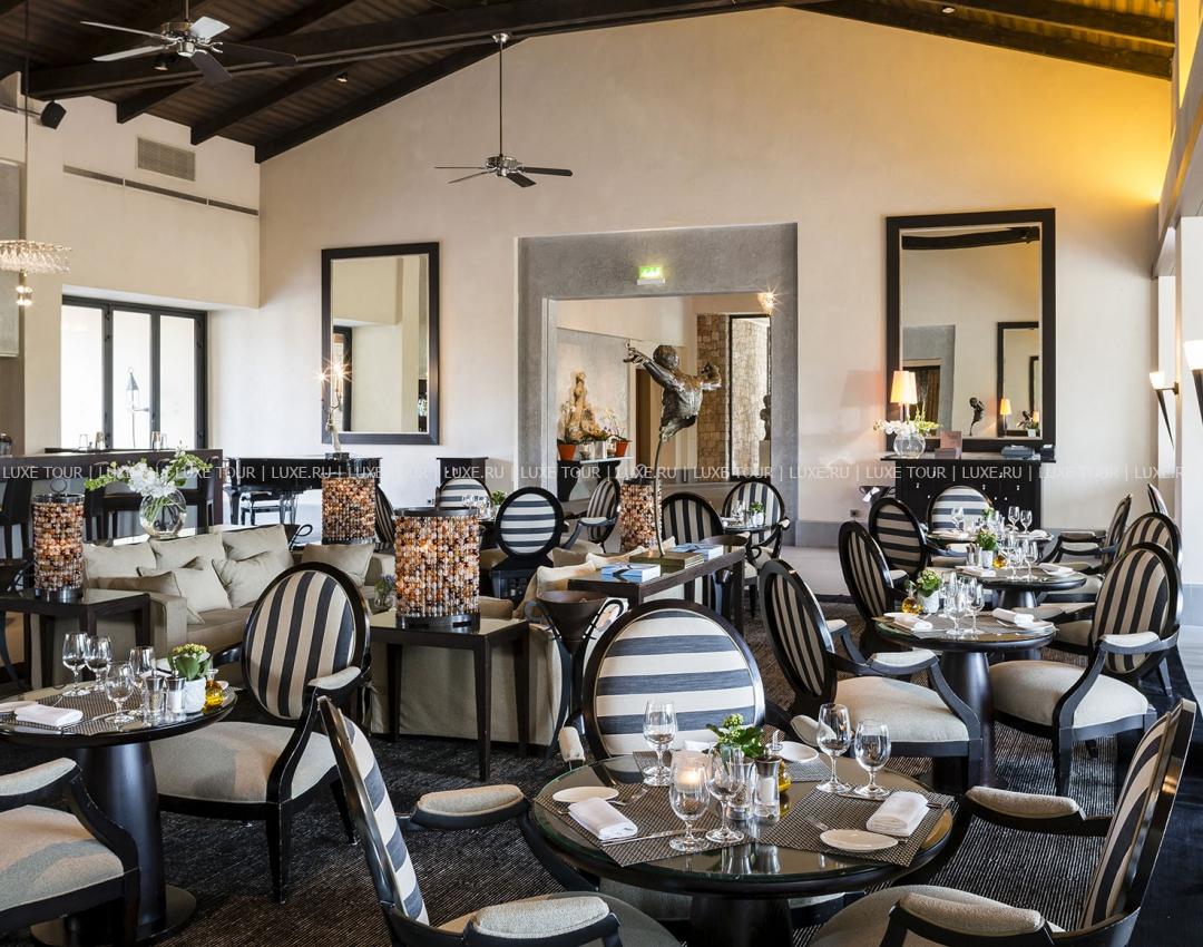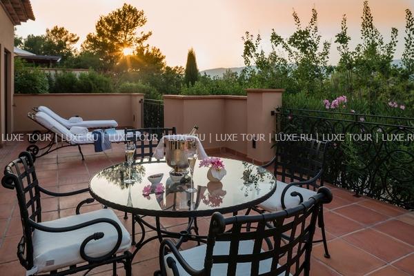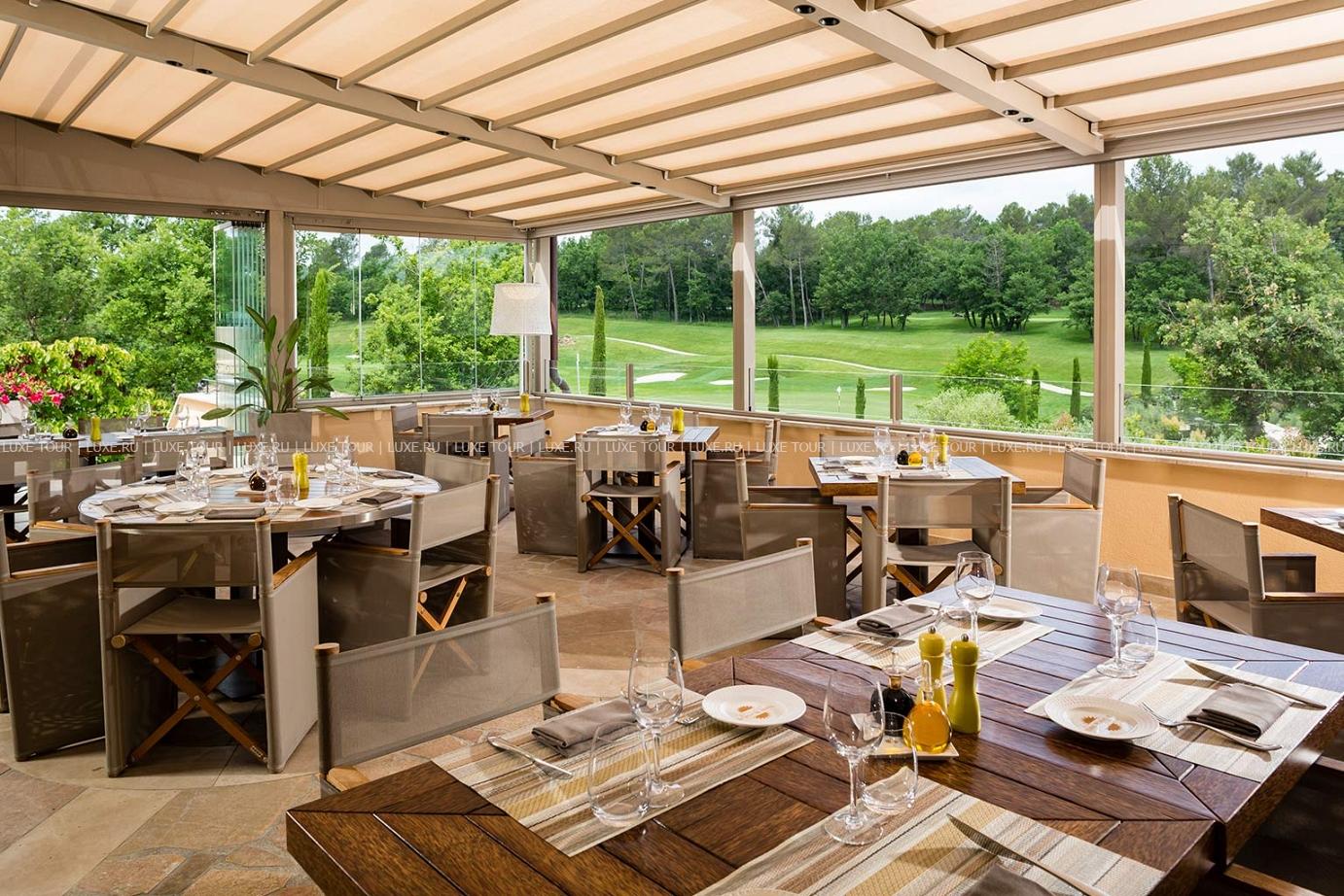 Отель расположен в провансальском городке Туррет в 30-45 минутах от международного аэропорта Канн Mandelieu, в 50-60 минутах от международного аэропорта Ниццы Côte d'Azur. Окруженный безбрежными полями ракитника, дубовыми лесами, простирающимися до альпийских вершин, старинными колоритными деревушками, примостившимися на высоких холмах и купающимися в золотых лучах солнца, бескрайними виноградниками, цветочными базарами и антикварными магазинчиками отель Terre Blanche Hotel Spa Golf Resort фактически олицетворяет тот особый мир французской провинции, благодаря которому так знаменит Прованс. В очаровательном уголке, скрытом от посторонних глаз, среди тишины и спокойствия, вечного упоения живописными пейзажами, запахами лаванды и тимьяна и лазурным небосводом, гостей ждет прием, способный удивить даже самого искушенного путешественника. Традиционные интерьеры, в которых преобладают дорогие породы дерева, мрамор, пышные материи, украшают работы современных мастеров, изящная мебель и приятные мелочи, создающие атмосферу уюта. Кроме красот природы, уникальных интерьеров и известного французского гостеприимства у отеля есть еще одно существенное преимущество: здесь вам не придется скучать ни минуты. В комплекс отеля входят 110 номеров категории Suites и Villas, спа-центр, 3 ресторана и бар, открытый бассейн, детский бассейн, джакузи, фитнес-центр, 2 поля для гольфа, 2 теннисных корта. Кроме того, отсюда совсем недалеко до манящих пляжей Сан-Тропе и бурлящего Монте-Карло, до экзотичного Экс-ан-Прованса и горнолыжного курорта в Изоле. А потому гостям доступны аренда велосипеда, горный велосипед, каноэ, рафтинг, каяк, водные виды спорта, морская рыбалка, горные лыжи и сноуборд (в 123 км от отеля).