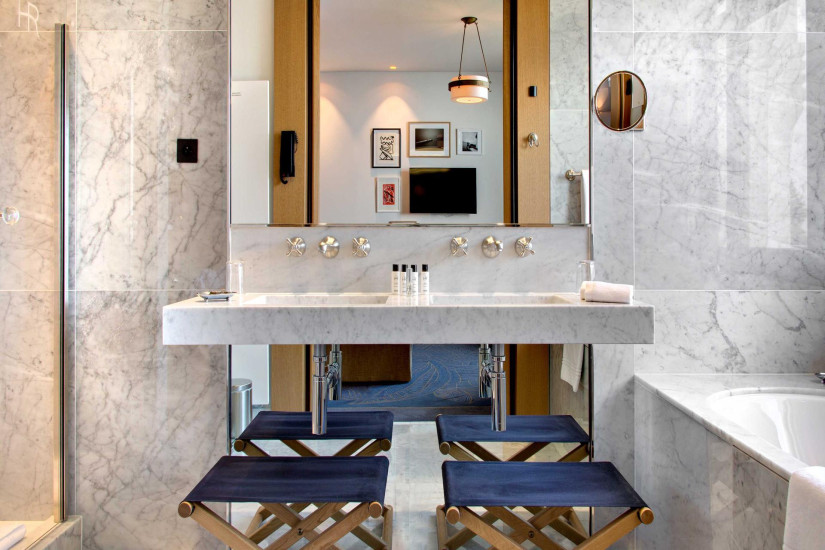 - 58 м2. Роскошный, светлый номер с видом на Женевское озеро состоит просторной спальни с кроватью king-size или двумя кроватями twin, гостиной зоны с диваном кроватью, отделанной мрамором ванной комнаты с душем и ванной, балкона. Максимальное размещение – 2 взрослых + 1 ребенок.