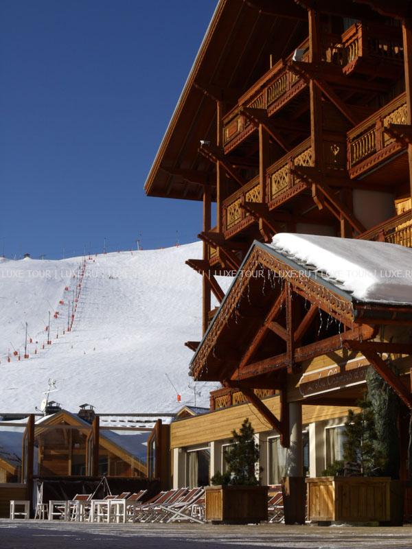 Деревянное здание Au Chamois D’Or Альп Д’Уэз , построенное в стиле традиционного альпийского шале, разместилось на самой высокой точке курорта, в окружении величественных склонов горного массива Гранд-Русс, рядом с лыжными трассами и подъемниками, стадионом для слалома и живописным «снежным парком». Немаловажной деталью является то, что гости Au Chamois D’Or Альп Д’Уэз могут добраться до отеля на лыжах при любом состоянии снежного покрова. Интерьеры всех помещений и комфортабельных номеров отеля сочетают элегантный уют и очарование старинных альпийских традиций: тепло натурального дерева, массивная кожаная мебель, изысканный декор. Расположение отеля обеспечивает отличные возможности для активных занятий зимним спортом, а условия, созданные в Au Chamois D’Or Альп Д’Уэз, обещают гостям замечательный отдых и после катания на лыжах: прекрасный оздоровительный центр с бассейном, сауной, фитнес-залом и кабинетами для массажа и СПА процедур, гастрономический ресторан, представляющий утонченную французскую кухню, чудесный бар с камином.