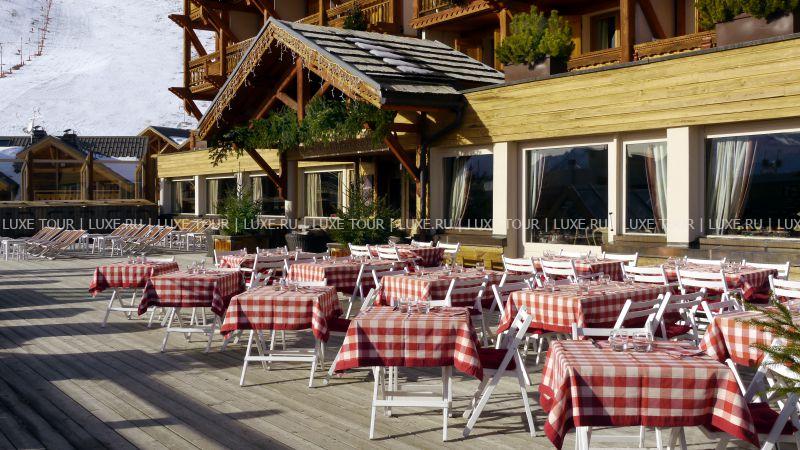 Ресторан отеля славится отличной кухней, представляющей традиционные французские блюда, приготовленные из отборных продуктов, а на просторной, залитой солнцем террасе можно отдохнуть, перекусить, выпить чашечку чая и полюбоваться горными пейзажами.