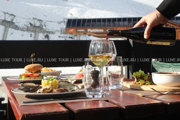 Le Schuss — ресторан в стиле французского бистро, представляющий блюда савойской кухни, которые подаются в уютном зале и на солнечной террасе, выходящей на южную сторону.