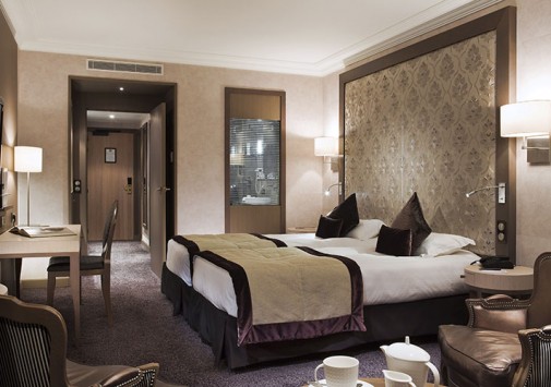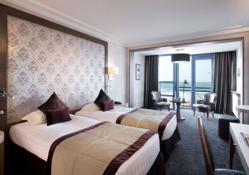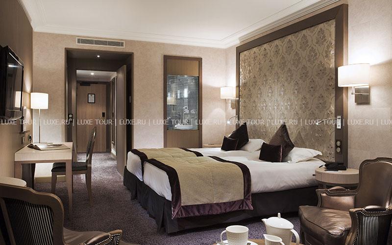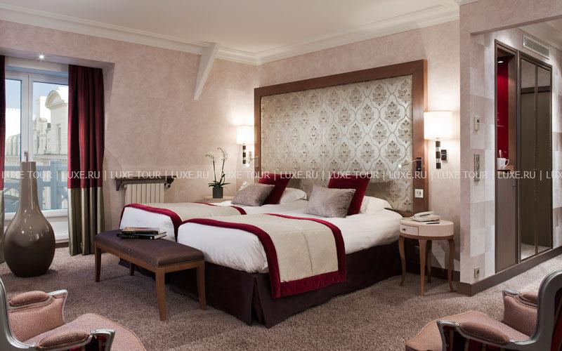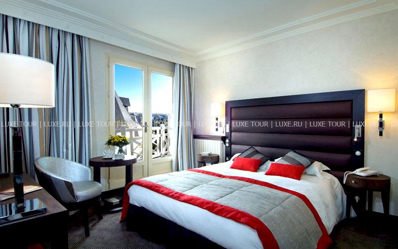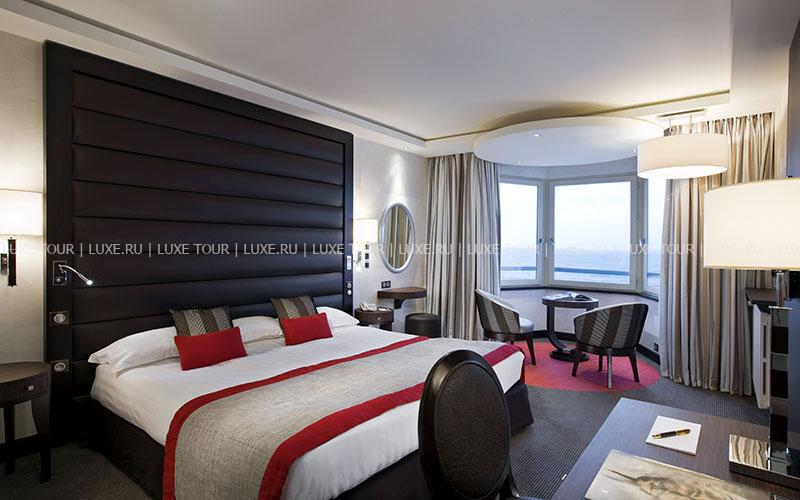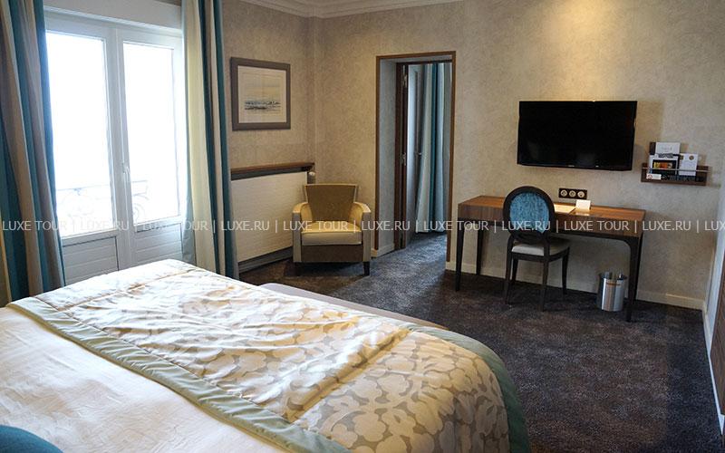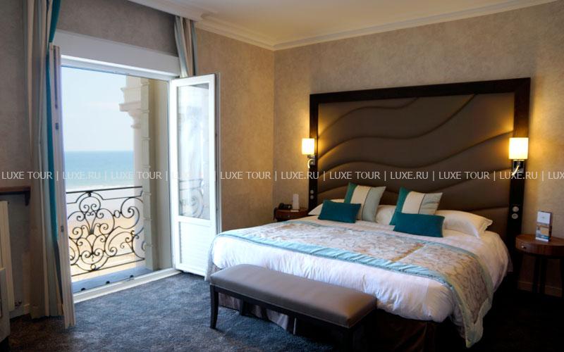 Отель расположен в нескольких шагах от исторического городка Сен-Мало, на северном побережье Бретани. Здание гостиницы было возведено еще в середине XIX века – тогда она называлась Grand Hôtel de Paramé – и очень быстро стало популярным центром отдыха у гостей со всех уголков Европы. Великолепный дворец в стиле belle-époque, вызывающий восхищение отдыхающих изящными башенками, огромными витражами и присущим шармом былого времени, своим длинным фасадом выходит на пляж курорта. Яркие цвета грандиозного зрелища, изменяющиеся по мере того, как солнце проходит свой ежедневный путь, особенно приятно наблюдать из глубоких кресел в гостиных, из шезлонгов, расположенных на террасе, или из бара La Passerelle, выходящего на залив Сан-Мало. В уникальных интерьерах гармонично сочетаются металл и камень, зеленые оттенки витражей в стиле гризайль и отделка стен, выполненная из светлых пород дерева. Красно-коричневая гамма внутреннего убранства, широкие лестничные пролеты, уютные залы и вид на океан создают впечатление утонченной элегантности и одновременно традиционного стиля. Здание было полностью реконструировано в 80-х годах прошлого века.