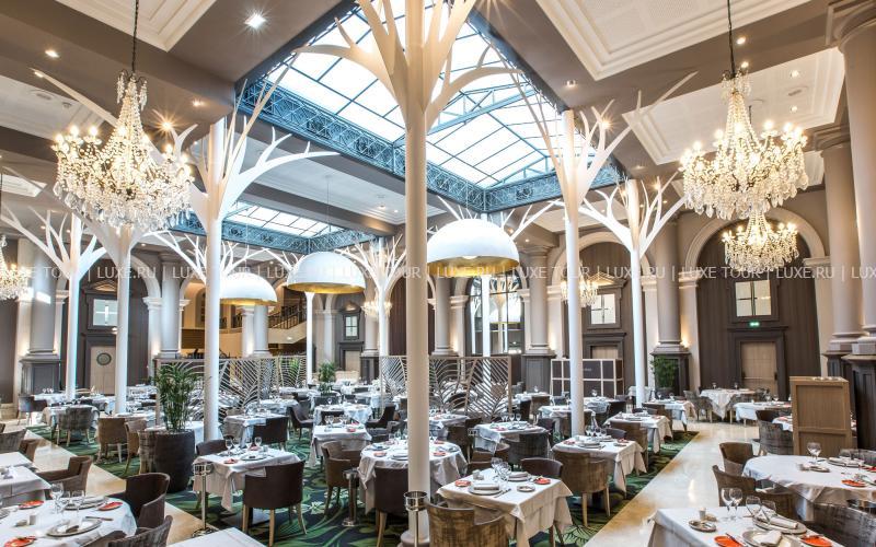 Архитектурный стиль 30-х годов прошлого века, колонны, водопады, мозаика и купола стеклянных крыш создают умиротворяющую гармоничную атмосферу ресторана La Verriere, в которую органично вписываются сервируемые здесь блюда традиционной кухни.