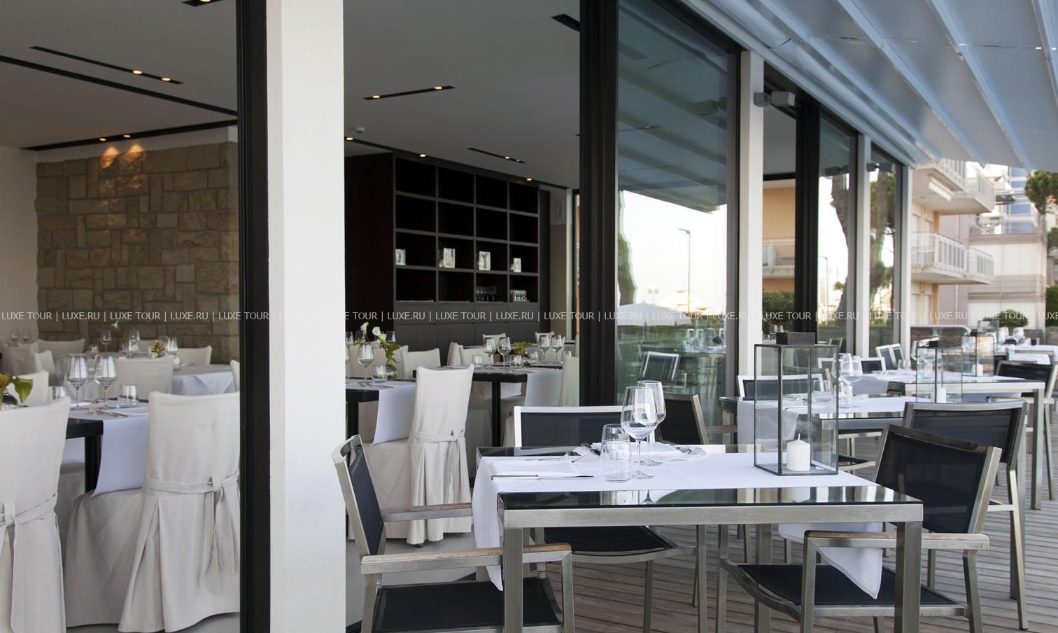 Ресторан отеля с изящным интерьером предлагает разнообразие блюд международной и средиземноморской кухонь, для желающих есть вегетарианское и диетическое меню.