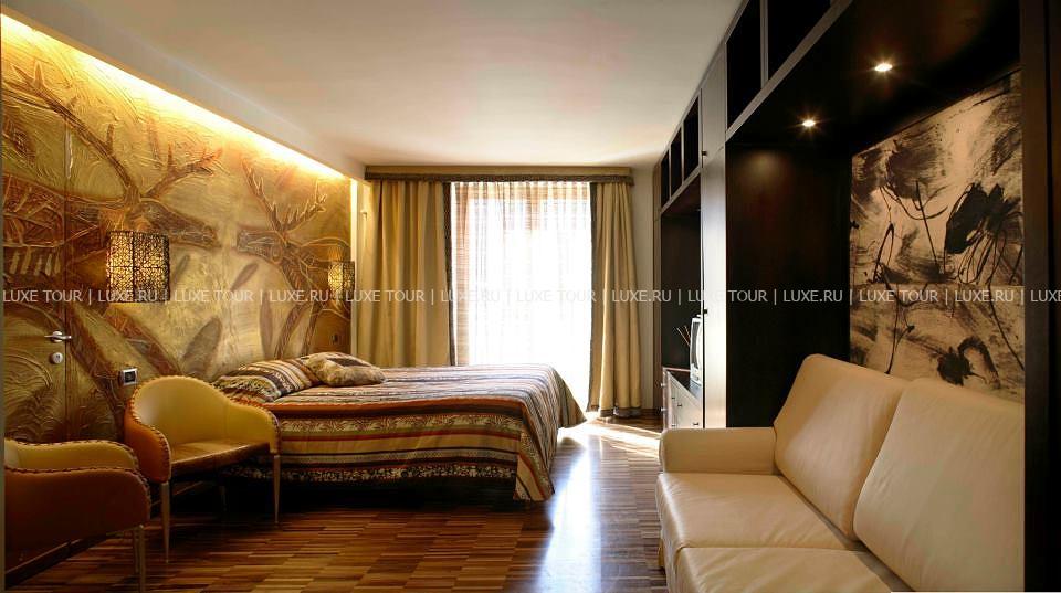 Комплекс отеля располагается на территории бывшего монастыря Santa Maria di Campiglio, у подножия горы Spinale в окружении Доломитовых Альп и ледников Adamello и Presanella, в 100 метрах от центра города. В отеле работает центр красоты, ресторан, бар, винный погребок, игровая комната для детей.