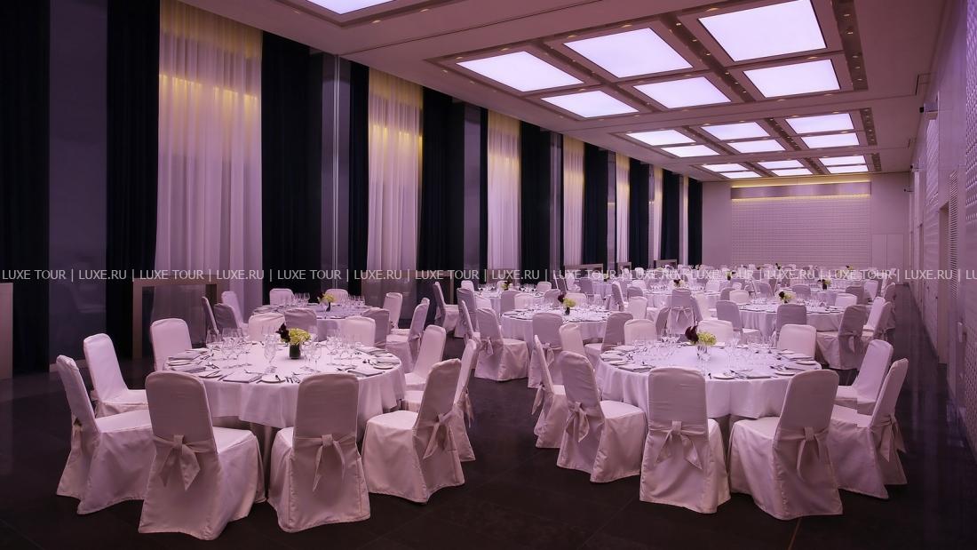 Для гостей – 8 залов для деловых и торжественных мероприятий площадью от 20 м2 до 560 м2, бизнес-центр, бесплатный Wi-Fi, парковка, аренда машин, лимузин-сервис, услуги консьержа, услуги прачечной и химчистки.