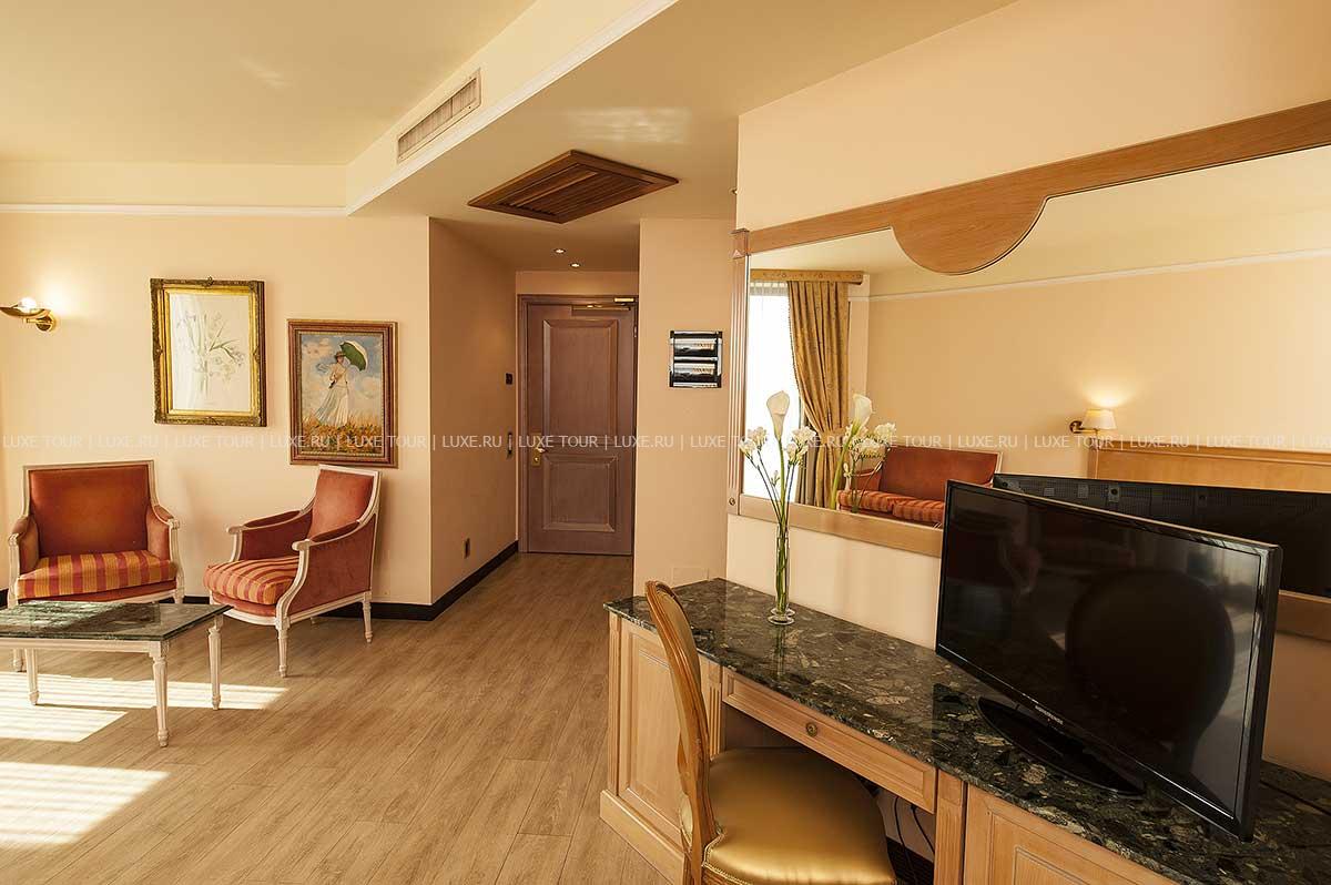 Фотографии представленных на сайте номеров дают общее представление о каждой категории номерного фонда гостиницы. Номера могут отличаться по метражу, цветовому решению, планировке, наличием/отсутствием балкона и т.п. Конкретный номер становится известен при заселении гостя в гостиницу.
