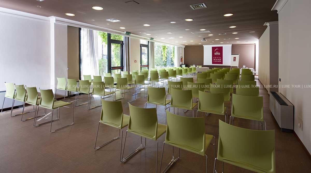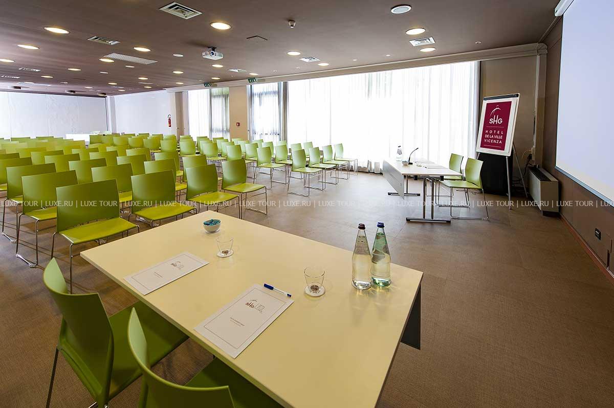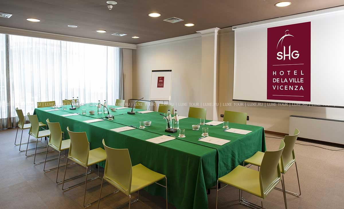 К услугам гостей — бесплатный шаттл до "золотой" ярмарки, современно оборудованный конференц-центр, парковка на 200 автомобилей. De La Ville обеспечивает все условия для приятного отдыха и деловых встреч в центре знаменитой "золотой" столицы — старинного города Виченцы.