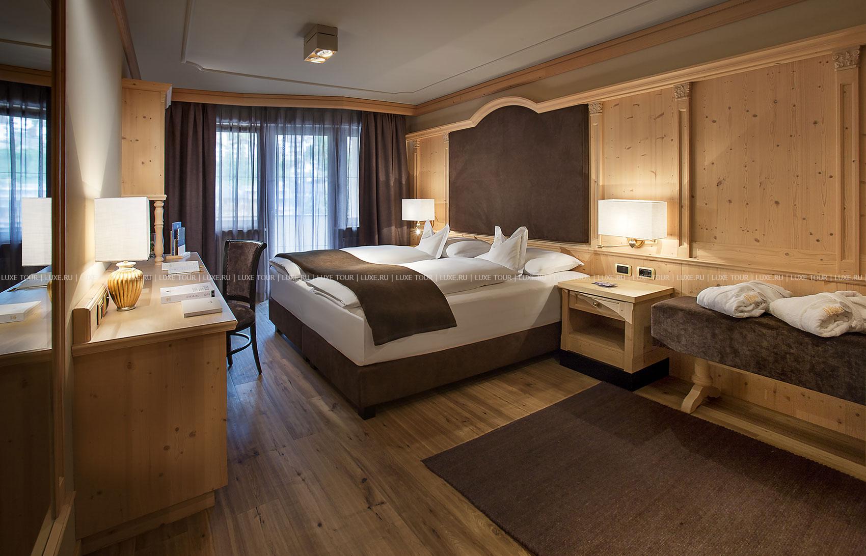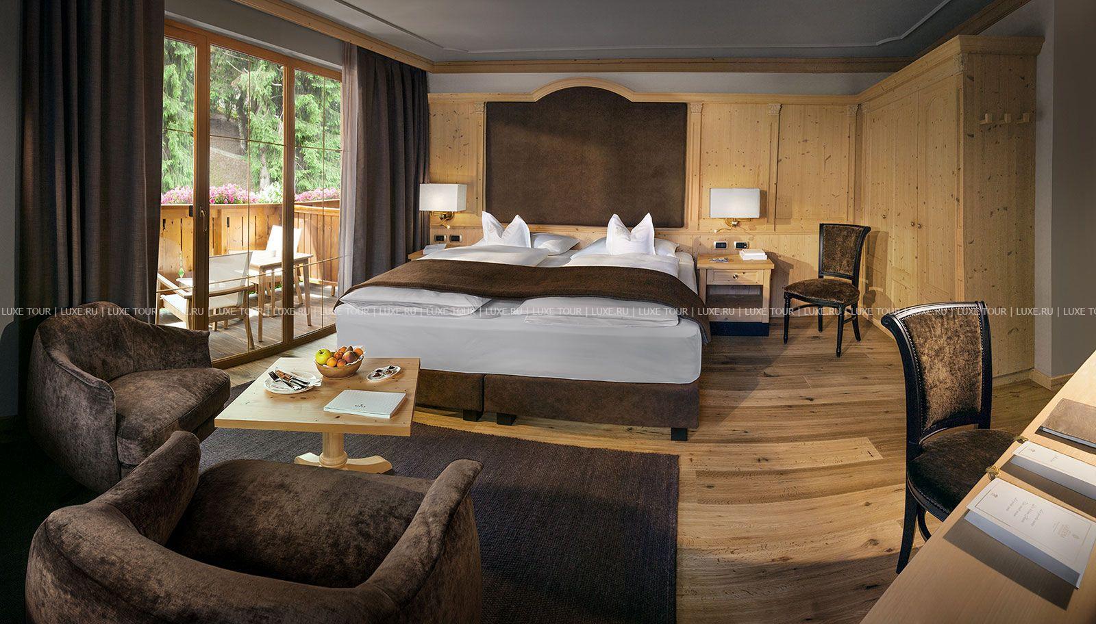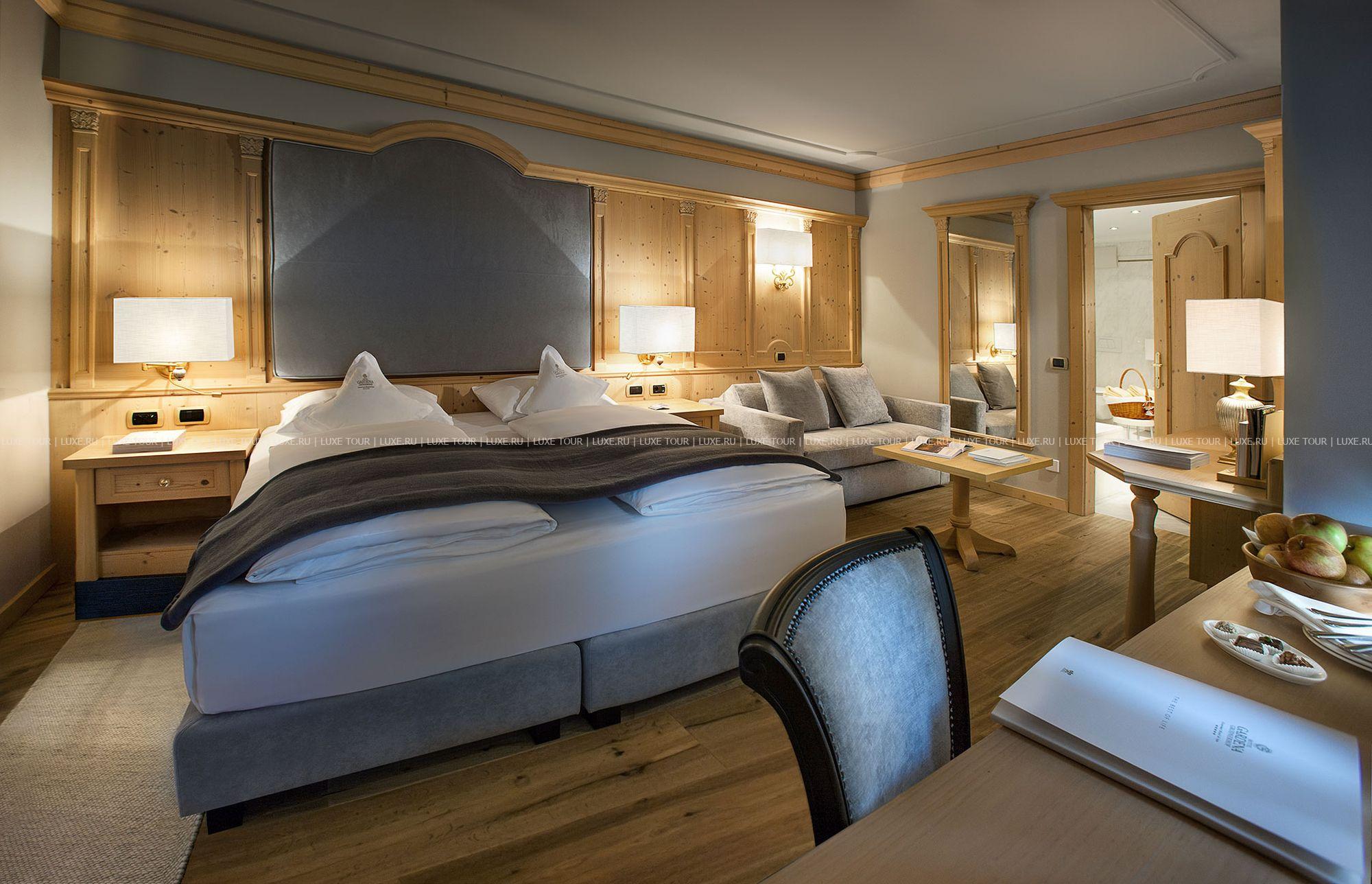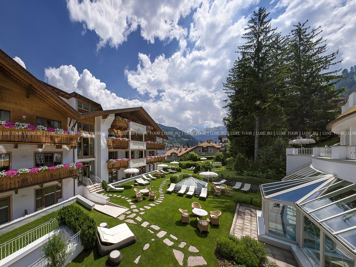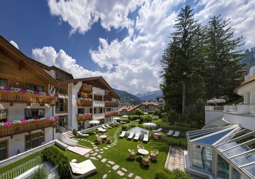 Gardena Grödnerhof — комфортабельный отель с 80-летней историей, расположенный среди просторного парка площадью 2000 кв.м и живописных горных альпийских ландшафтов, был полностью обновлен в 2001 году. Изысканные интерьеры помещений отеля и современные уютные номера декорированы в тирольском стиле, с отделкой из дерева, элегантной мебелью, майоликовыми печами. Отель располагает Центром Красоты и Здоровья, занимающим 1300 кв.м и предлагающим широкий спектр программ по уходу за здоровьем и внешностью: здесь есть крытый подогреваемый бассейн, различные сауны, всевозможные водные процедуры, а Центр Красоты Beauty Farm Anais представляет многообразие программ по уходу за лицом и телом с использованием продукции известных косметических линий Thalgo, Sothys, Vagheggi.