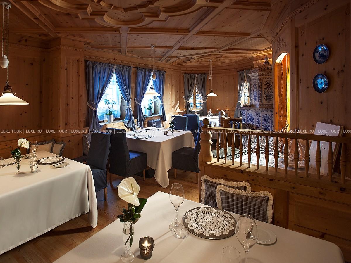 Элегантный ресторан Anna Stuben предлагает большой выбор изысканных блюд традиционной тирольской, интернациональной и средиземноморской кухонь, а также богатую карту вин из собственного винного погреба, включающих знаменитые марки вин из различных районов Италии и всего мира.
