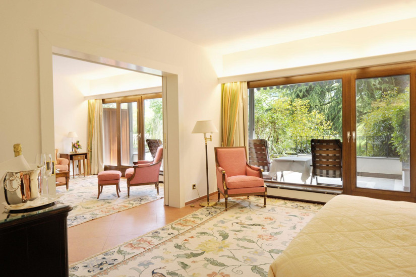Всего в отеле 83 номера различных категорий, включая 62 стандартных номера (Single Room, Double Room) и 21 Suite (Junior Suite, Deluxe Room и Suite). Из большинства номеров открывается вид на окружающий отель парк. В главном здании расположены 68 номеров, включая 60 Double Single Room, 6 Junior Suite и 2 Suite. Большинство номеров оформлены в теплых цветах и включают балконы или террасы. Возможно совмещение номеров различных категорий.