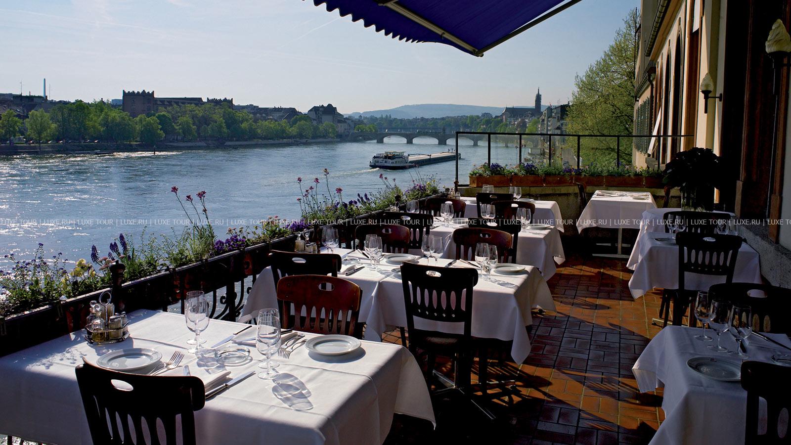 Зимой бар привлечет Вас уютным камином, а летом террасой с видом на Рейн, сервируются утонченные напитки и аппетитные закуски.