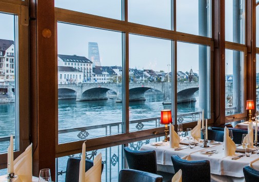 Роскошный ресторан Cheval Blanc предложит соблазнительные блюда высокой французской кухни, большой выбор изысканных вин, среди которых также представлено Château Cheval Blanc, по имени которого и назван ресторан. Летом работает терраса с видом на Рейн.