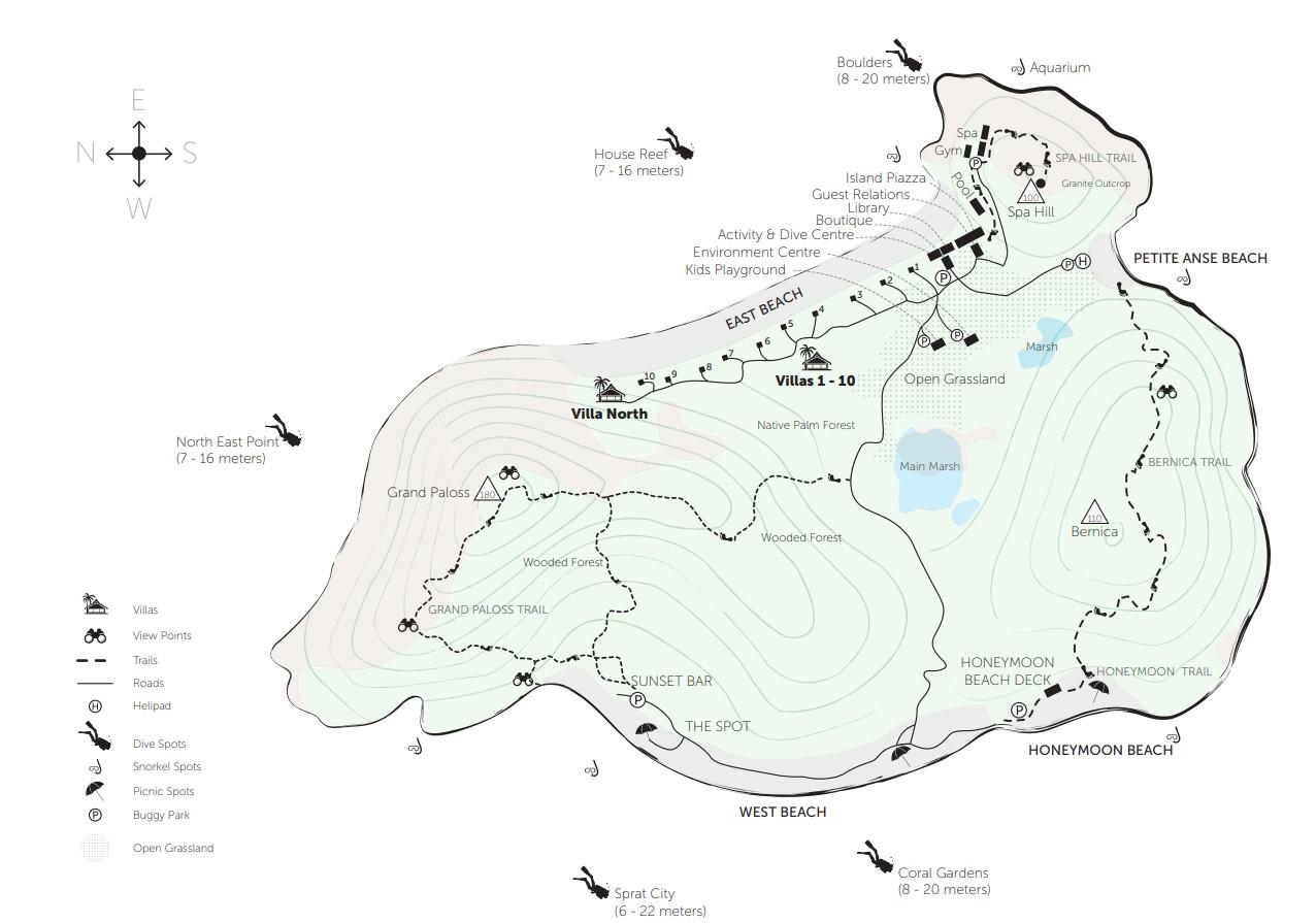 Уникальный отель North Island расположен на одноименном уединенном острове — здесь на небольшом участке суши, окруженном изумрудной гладью Индийского океана, обитают редчайшие виды птиц, черепах и рыб, растут экзотические деревья — терминалия, takamaka и морской кокос, здесь можно отдохнуть от шума цивилизации и соприкоснуться с девственной природой океанского острова. В отеле всего 11 вилл, с тростниковыми крышами и просторными террасами с собственными бассейнами. Все виллы расположены среди кокосовых пальм и пышной тропической зелени, у великолепного белоснежного пляжа, выполнены в традиционном стиле Сейшельских островов и отличаются оригинальностью оформления и отделки: редкие местные породы дерева и камня, плетеная мебель, произведения искусства сейшельских и африканских мастеров, удивительные артефакты и украшения. Отель располагает СПА-центром, предлагающими широкий спектр процедур по уходу за телом и лицом. На территории отеля есть открытый 45-метровый бассейн, тренажерный зал, центр по организации досуга и дайвинг-центр, предлагаются различные водные виды спорта, морские круизы, экскурсии на соседние острова. Насладиться трапезой гости могут в просторном обеденном зале с захватывающим видом на океан, на пляже в уединенной обстановке, у бассейна или на территории собственной виллы. Как таковое меню отсутствует, и шеф-повар готовит блюда в соответствии с кулинарными пристрастиями гостей. Для гостей также работает West Beach Bar, где можно насладиться закатом и отведать экзотические коктейли.