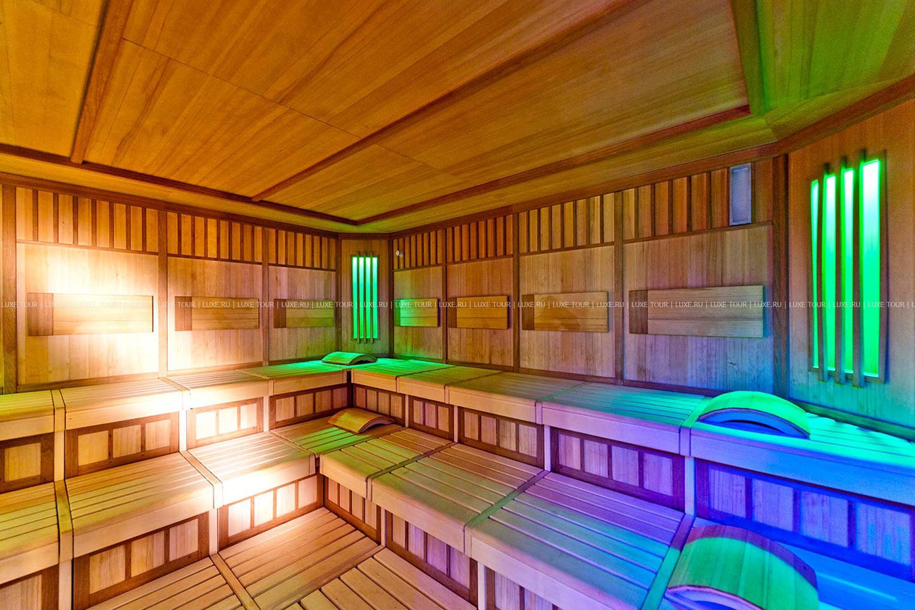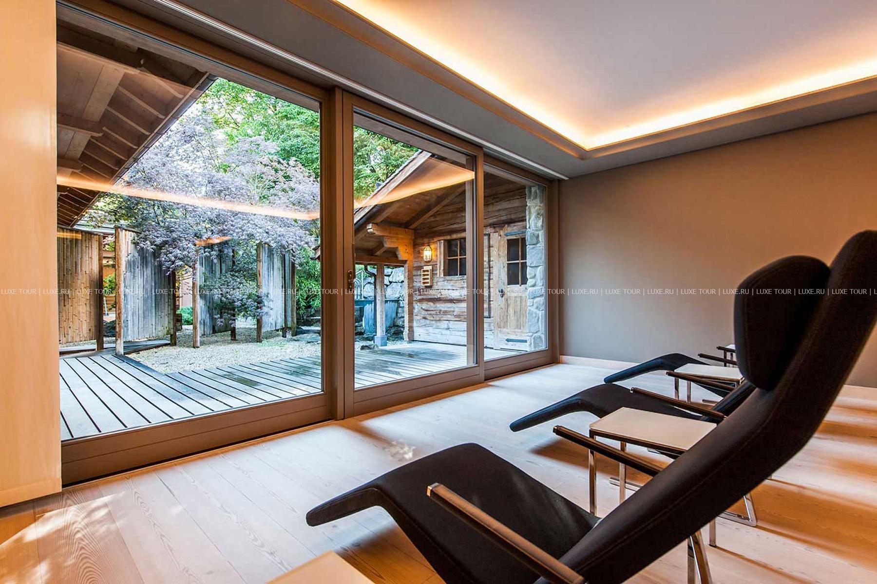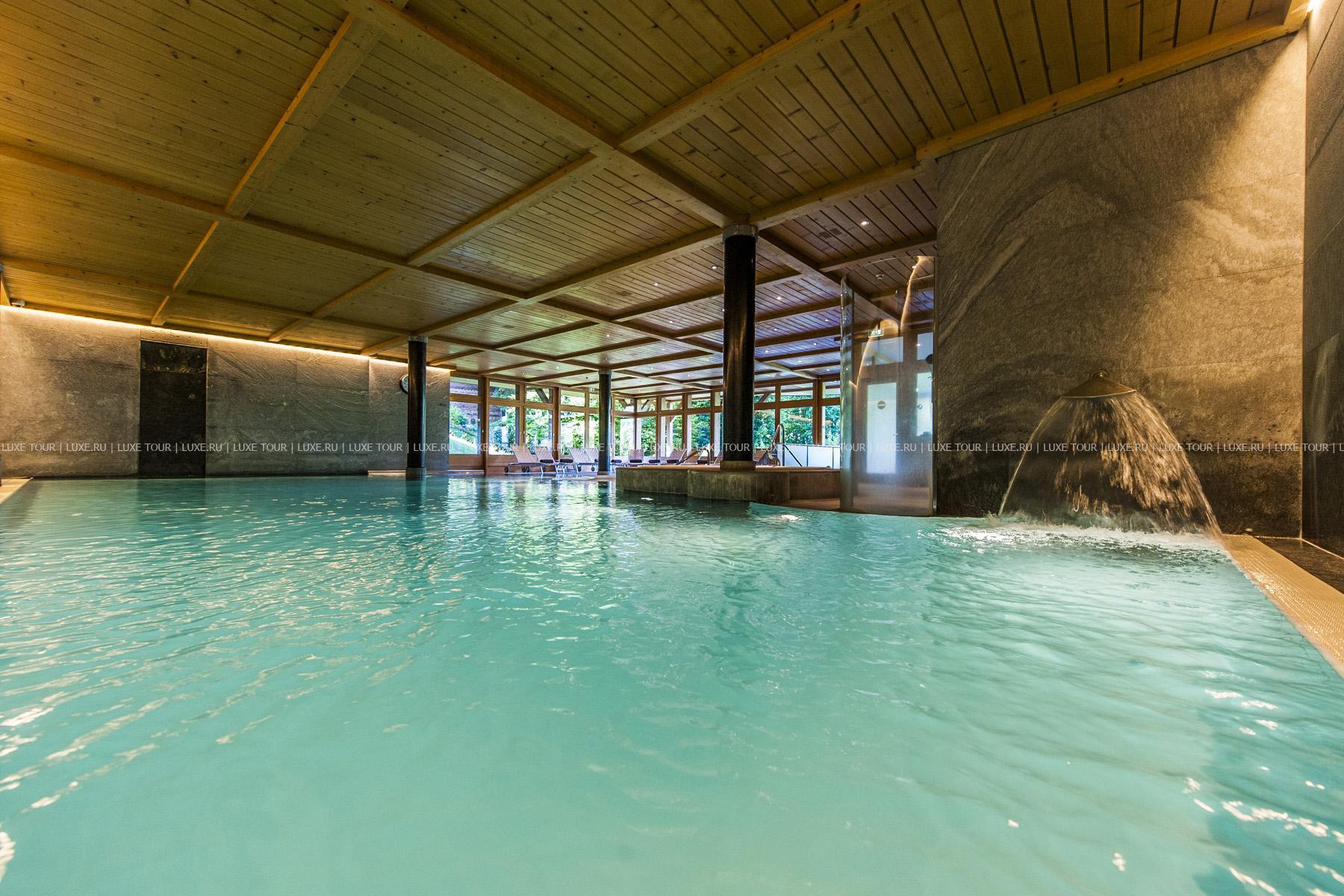 Отель располагает первоклассным центром Le Grand Spa, где на площади 2500 м2 находится: 15-метровый крытый бассейн с водопадом, джакузи, ароматическая, финская и био-сауны, хаммам, гималайская соляная комната, ледяной грот, фитнес-зал, студия йоги и пилатес, салон красоты, солярий, зона отдыха и 10 процедурных кабинетов, в которых предложен широкий спектр услуг для тела и лица на основе альпийских традиций и с использованием натуральных средств швейцарской линии Cellcosmet и британского бренда Bamford.