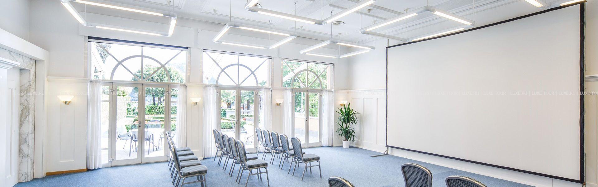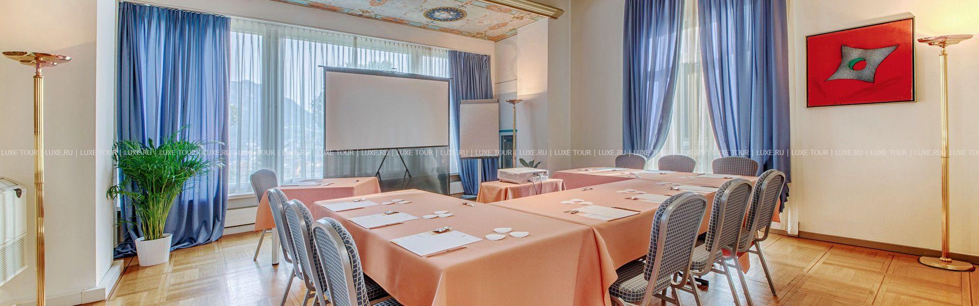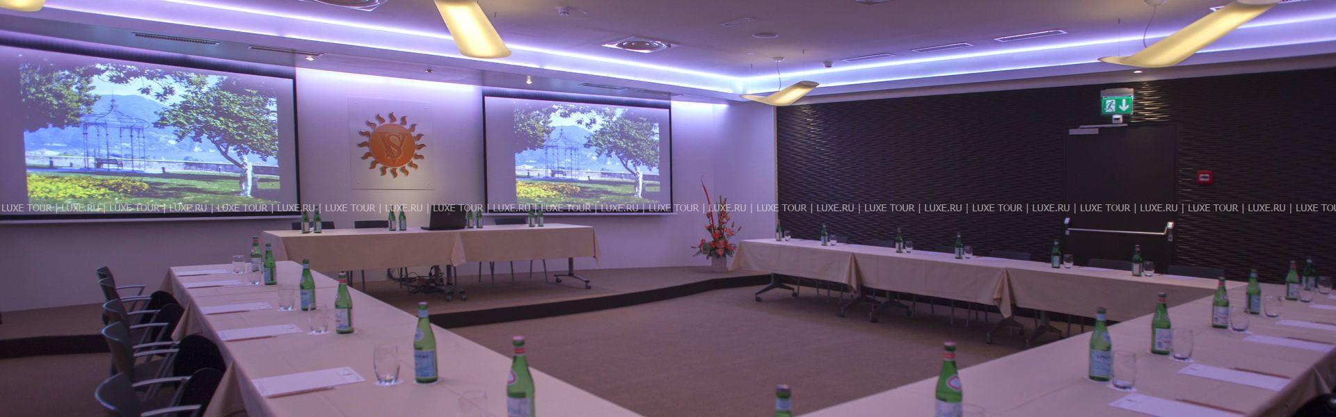 Для проведения встреч и конференций отель располагает 3 залами и 2 комнатами, где можно разместить от 10 до 80 гостей.