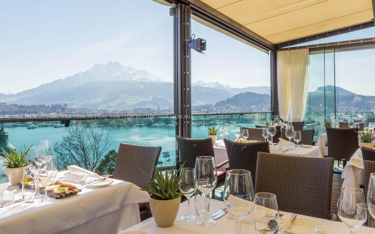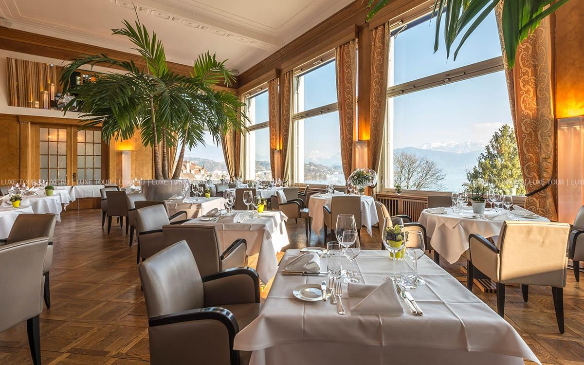 Подуманное сочетание современного дизайна и классических традиций создает особенную атмосферу ресторана Scala, предлагающего гостям блюда местной и международной кухни. Классический уголок ресторана с камином, лепкой, изображениями греческих богов Диониса и Пана, паркетным полом напоминают о стиле прошлых времен. В теплое время года ресторан отрывает просторную террасу, завораживающую посетителей видами на Люцернское озеро, город и Альпы.
