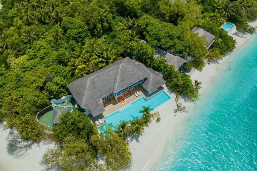 - 721 м2. Состоит из двухуровневой и одноуровневой вилл и включает: четыре спальни (три с кроватью king-size), открытые и крытые гостиные, столовую, кухню, кабинет, игровую комнату, гардеробные, ванные комнаты (три открытого плана: одна с ванной, парной, крытым и открытым душем, и две – с ванной и душем на открытом воздухе), террасу на втором этаже с зоной отдыха, частный сад, террасу с бассейном с детской зоной, зоной отдыха, обеденной зоной, выходом к пляжу и видом на сад и океан. Вилла расположена в саду у пляжа. Максимальное размещение – 8 взрослых + 4 ребенка.