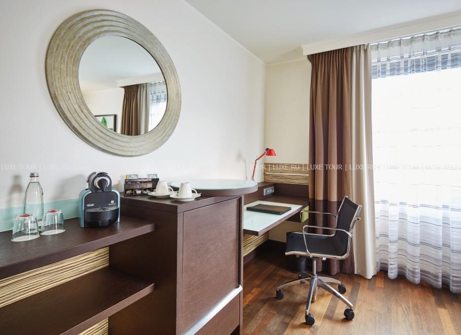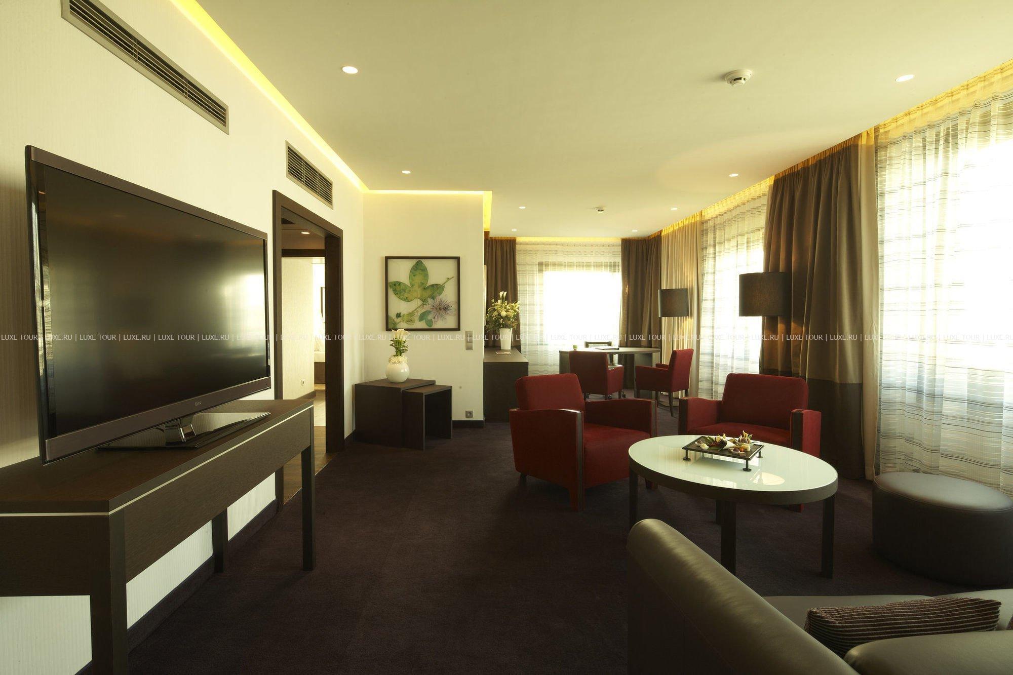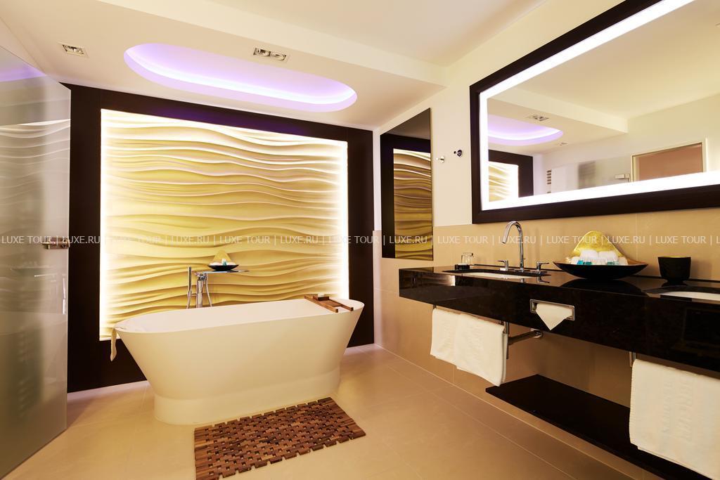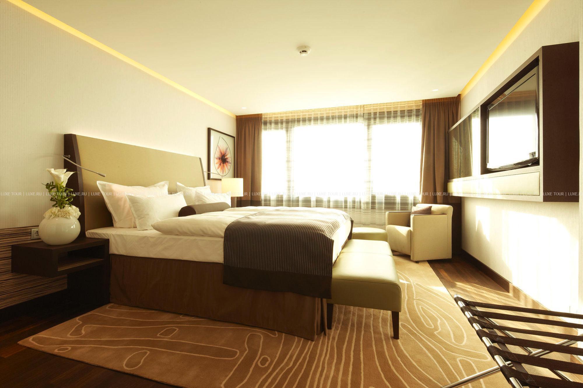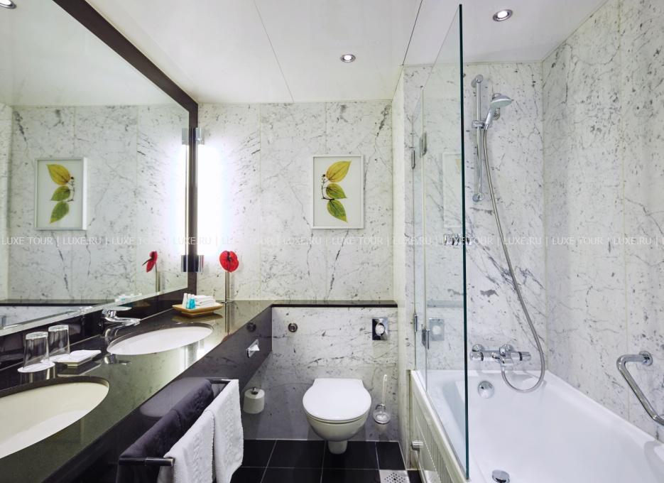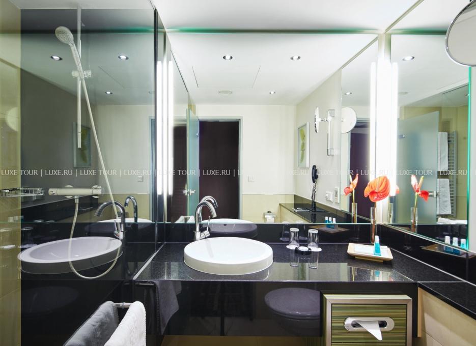 Отдельного слова достойны убранные в индивидуальном стиле номера отеля. Современная мебель, сочетающая в себе практичность и эстетическое великолепие, красочные полотна, мягкие ковры, ткани теплых расцветок и цветочные композиции идеально вписаны в гармоничный декораторский план. Благодаря высоким потолкам, панорамным окнам и вниманию к деталям дизайнерам удалось искусственно расширить пространство номеров, сделать их светлее и создать атмосферу теплоты и комфорта. Помимо ресторанов и баров и 397 номеров, отель также предлагает гостям спа-центр, включающий крытый бассейн с подогревом, сауну, солярий, тренажерный зал, массажные кабинеты и бар у бассейна.