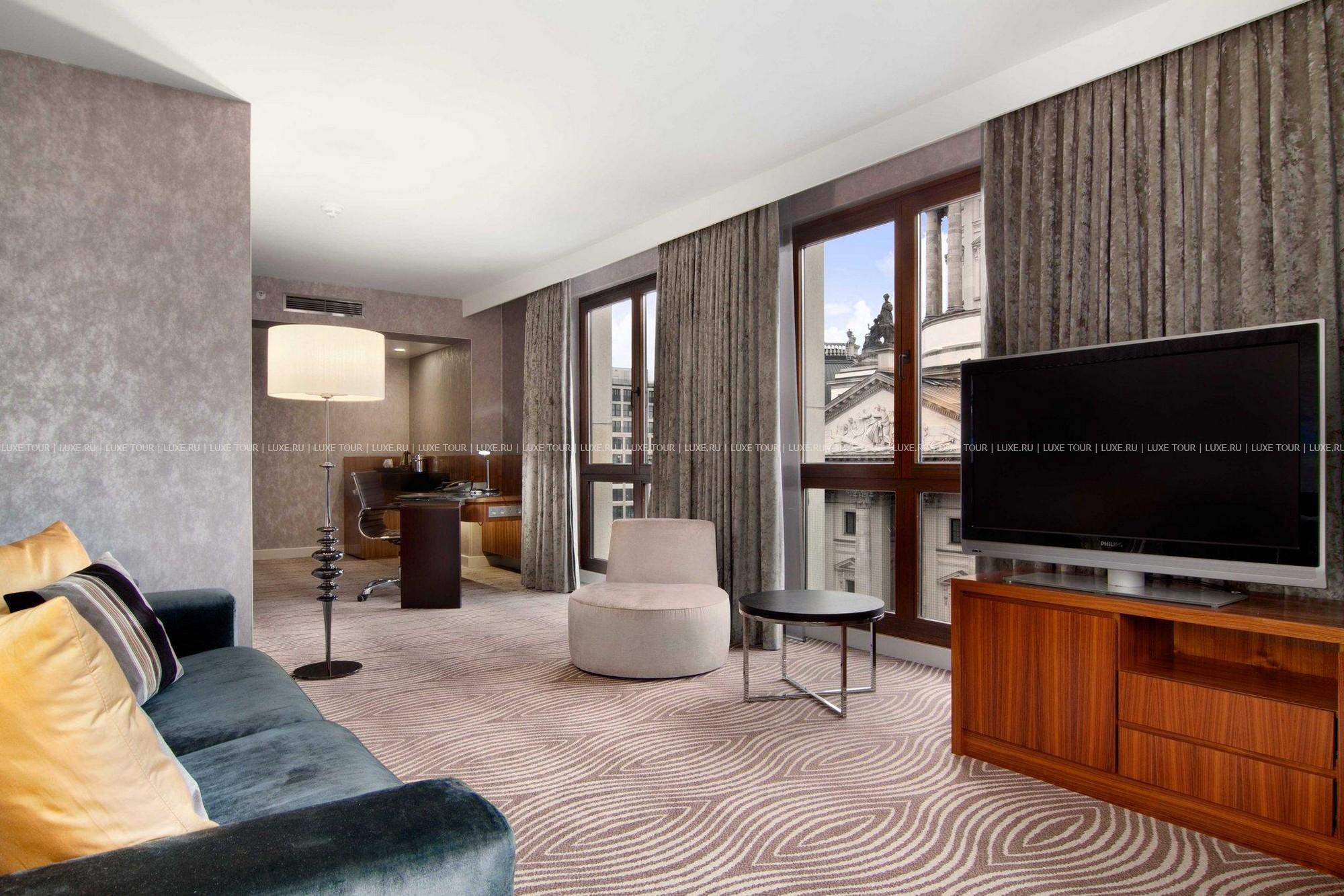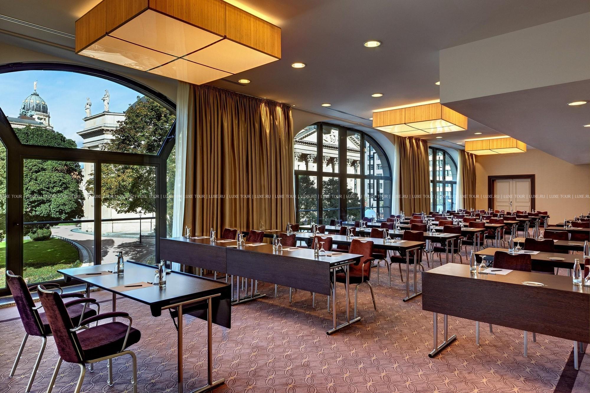 Благодаря своему удобному местоположению — неподалеку от знаменитейших достопримечательностей немецкой столицы (Бранденбургских ворот, здания Рейхстага, бульвара Unter den Linden, французских и немецких соборов) и в то же время поблизости от крупных бизнес центров и банков, отель будет удобен как для тех, кто совершает деловые поездки, так и для желающих просто хорошо отдохнуть в кипящем жизнью мегаполисе. При этом, не выходя из здания отеля, вы сможете активно заниматься спортом, отдохнуть в центре талассотерапии, позаботиться о своей внешности в косметическом салоне и вкусно поужинать в одном из изысканных ресторанов отеля. В комплекс отеля входят 5 ресторанов и 2 бара, а также спа-центр, включающий бассейн, солярий и тренажерный зал.