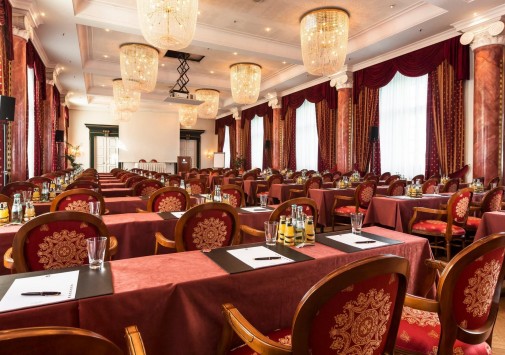 9 конференц-залов, большой бальный зал площадью 385 кв.м, банкетные залы.