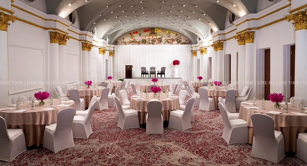 Для гостей — залы для деловых и торжественных мероприятий, включая зал для торжеств, бизнес-центр, парковка, прокат машин, услуги консьержа, услуги прачечной и химчистки.