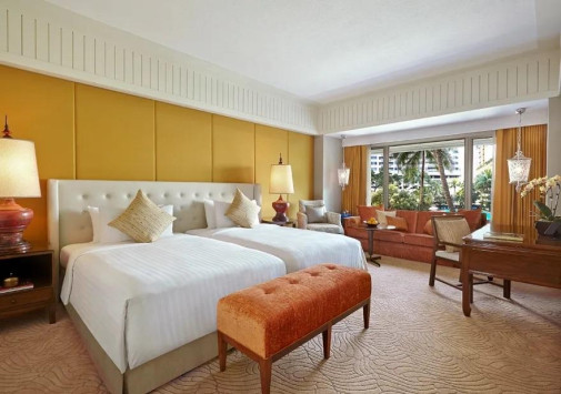 Фешенебельный Anantara Siam Bangkok, расположенный в самом сердце Бангкока, воссоздает великолепие тайского дворца: изящная архитектура, роскошные интерьеры с фресками ручной работы и расписными шелковыми панно, пышные тропические сады с причудливыми скульптурами и прудами с лотосами. При этом гостей ждет весь спектр современных услуг класса «люкс»: шикарные номера разных категорий и несколько ресторанов и баров на любой вкус, лазурный бассейн и детский клуб, круглосуточный фитнес-центр и спа-центр, многочисленные залы для деловых и торжественных мероприятий.