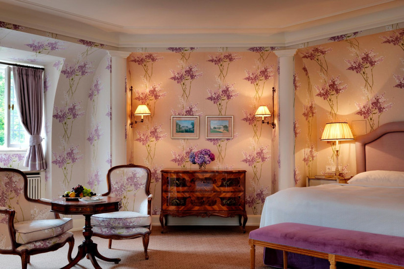 - 100 м2. Исторический номер, в котором когда-то останавливался последний немецкий Император Фридрих II, состоит из спальни с кроватью king-size, отдельной гостиной с оригинальным письменным столом самого Императора, гардеробной, ванной комнаты с ванной и отдельным душем, гостевой уборной. Вид на парк и поле для гольфа. Максимальное размещение - 3 человека.
