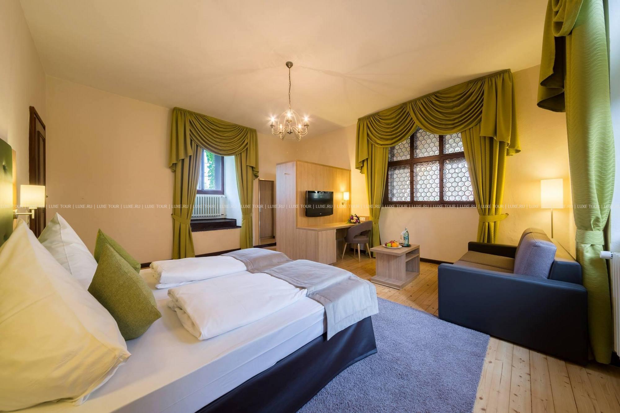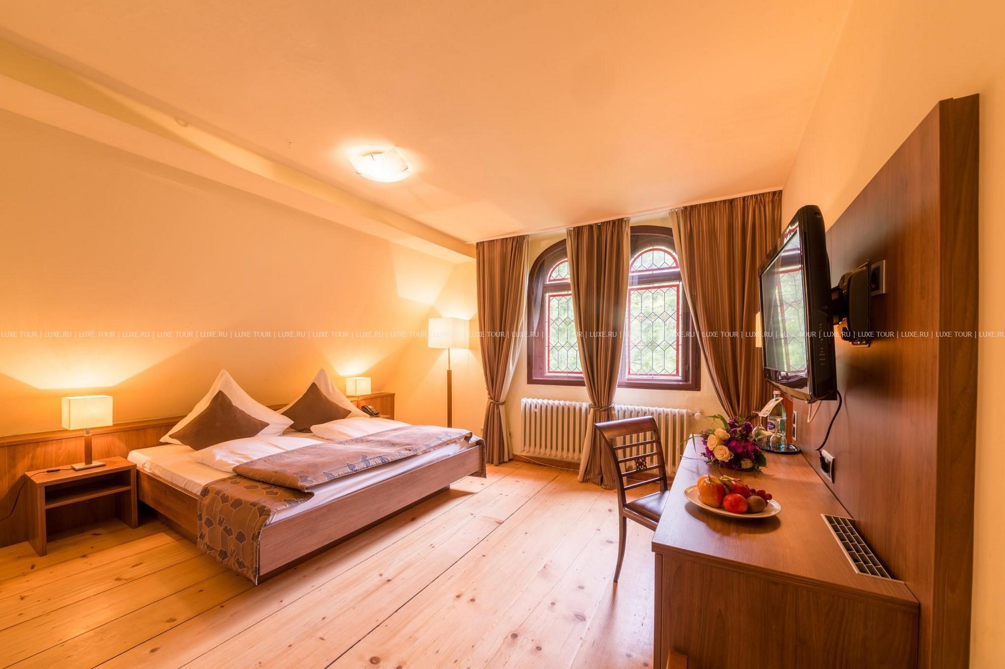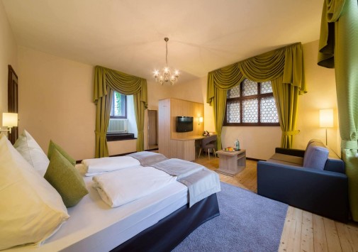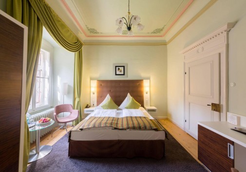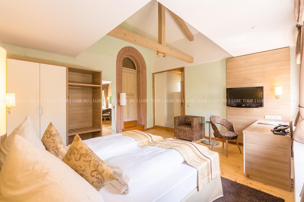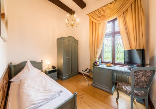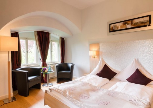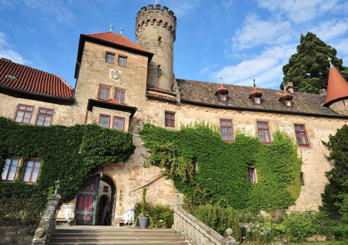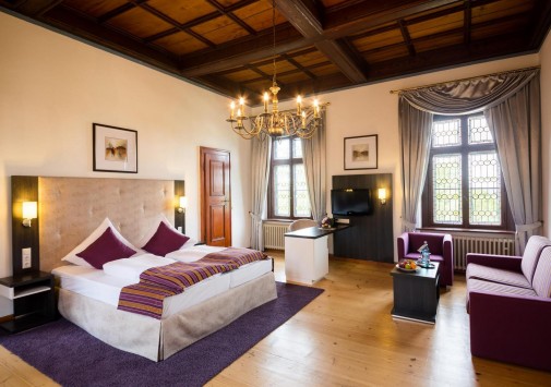 Этот отель располагается в настоящем средневековом замке, впервые упомянутом в исторических источниках еще в начале XIV века в далеком 1306 году. В те времена эти земли, покрытые густыми лесами, принадлежали графине Юте фон Хеннеберг. За многовековую историю замок пережил и полное разрушение в эпоху Крестьянской войны, и смену владельцев, каждый из которых оставлял свой след в архитектуре строения, и религиозные конфликты. А в конце XX века – в 1989-96 годах Schloss Hohenstein был переделан в небольшой уютный отель, окруженный живописным парком в стиле рококо. Здесь на лоне природы, вдали от шумных городов, Вы сможете прикоснуться к старинным монументам, почувствовать очарование ушедших эпох и насладиться полноценным отдыхом. Этот отель также может стать идеальным местом для празднования свадьбы или юбилея в неподражаемой романтической обстановке.
