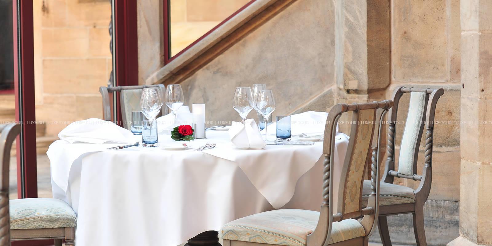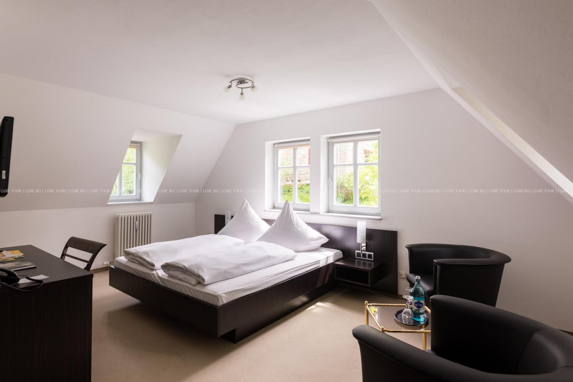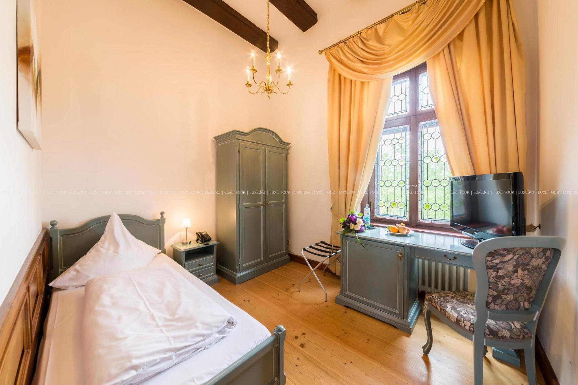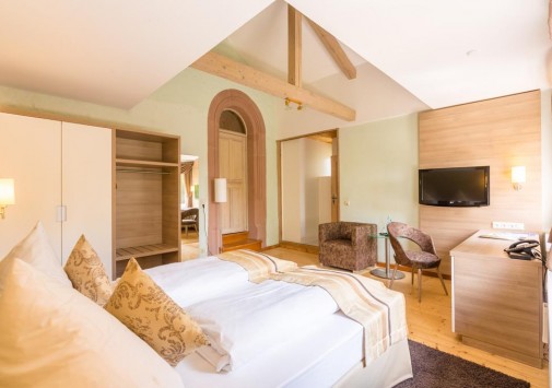Этот отель располагается в настоящем средневековом замке, впервые упомянутом в исторических источниках еще в начале XIV века в далеком 1306 году. В те времена эти земли, покрытые густыми лесами, принадлежали графине Юте фон Хеннеберг. За многовековую историю замок пережил и полное разрушение в эпоху Крестьянской войны, и смену владельцев, каждый из которых оставлял свой след в архитектуре строения, и религиозные конфликты. А в конце XX века – в 1989-96 годах Schloss Hohenstein был переделан в небольшой уютный отель, окруженный живописным парком в стиле рококо. Здесь на лоне природы, вдали от шумных городов, Вы сможете прикоснуться к старинным монументам, почувствовать очарование ушедших эпох и насладиться полноценным отдыхом. Этот отель также может стать идеальным местом для празднования свадьбы или юбилея в неподражаемой романтической обстановке.
