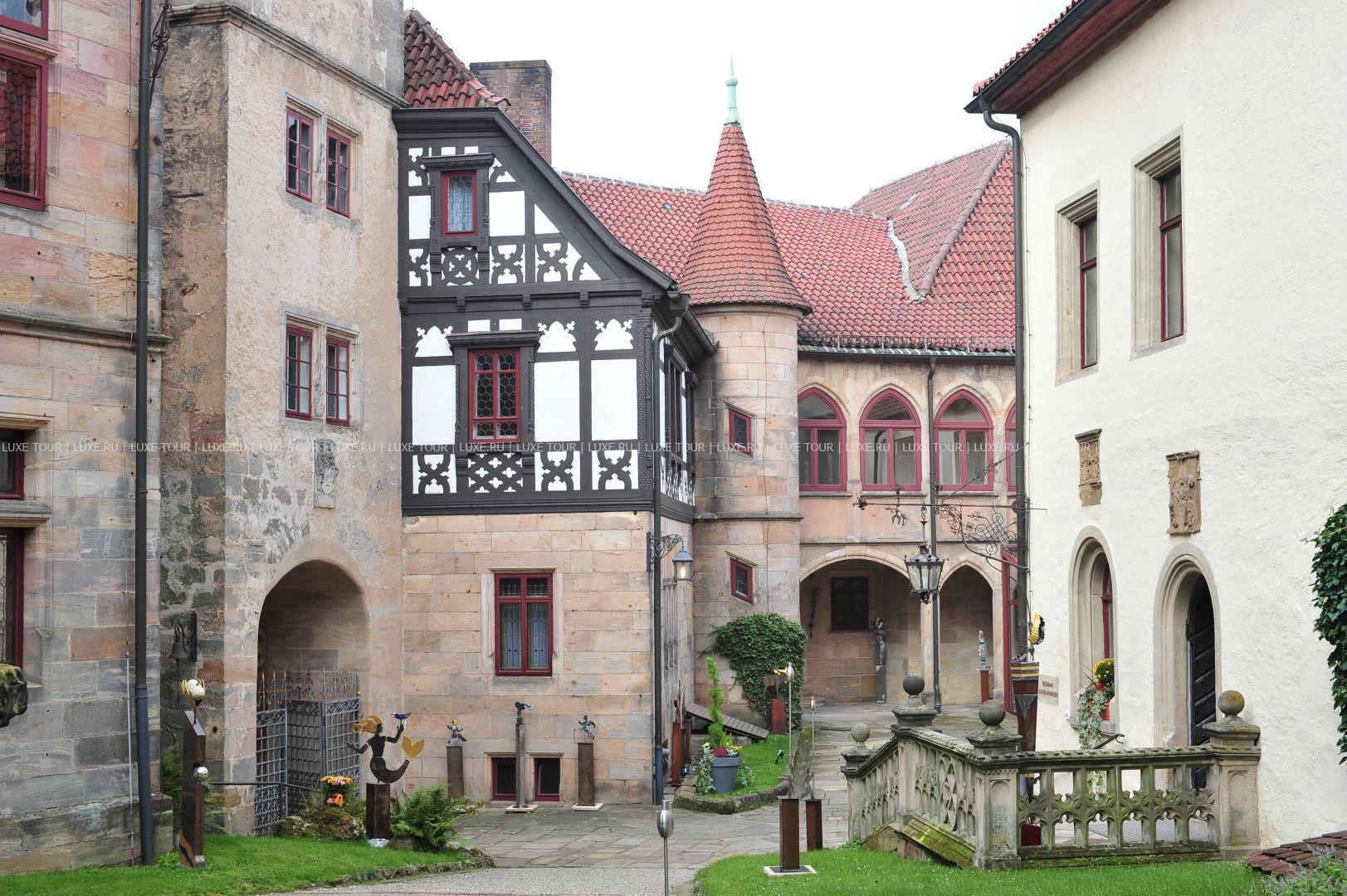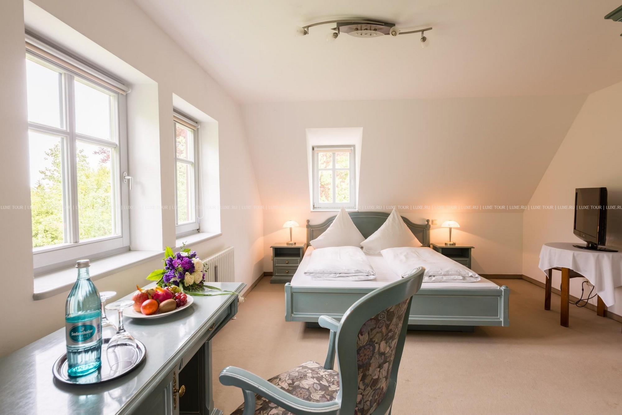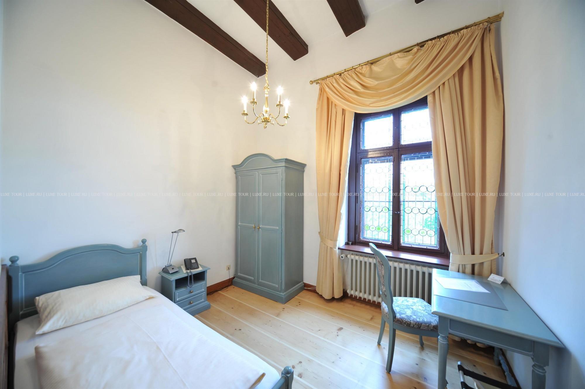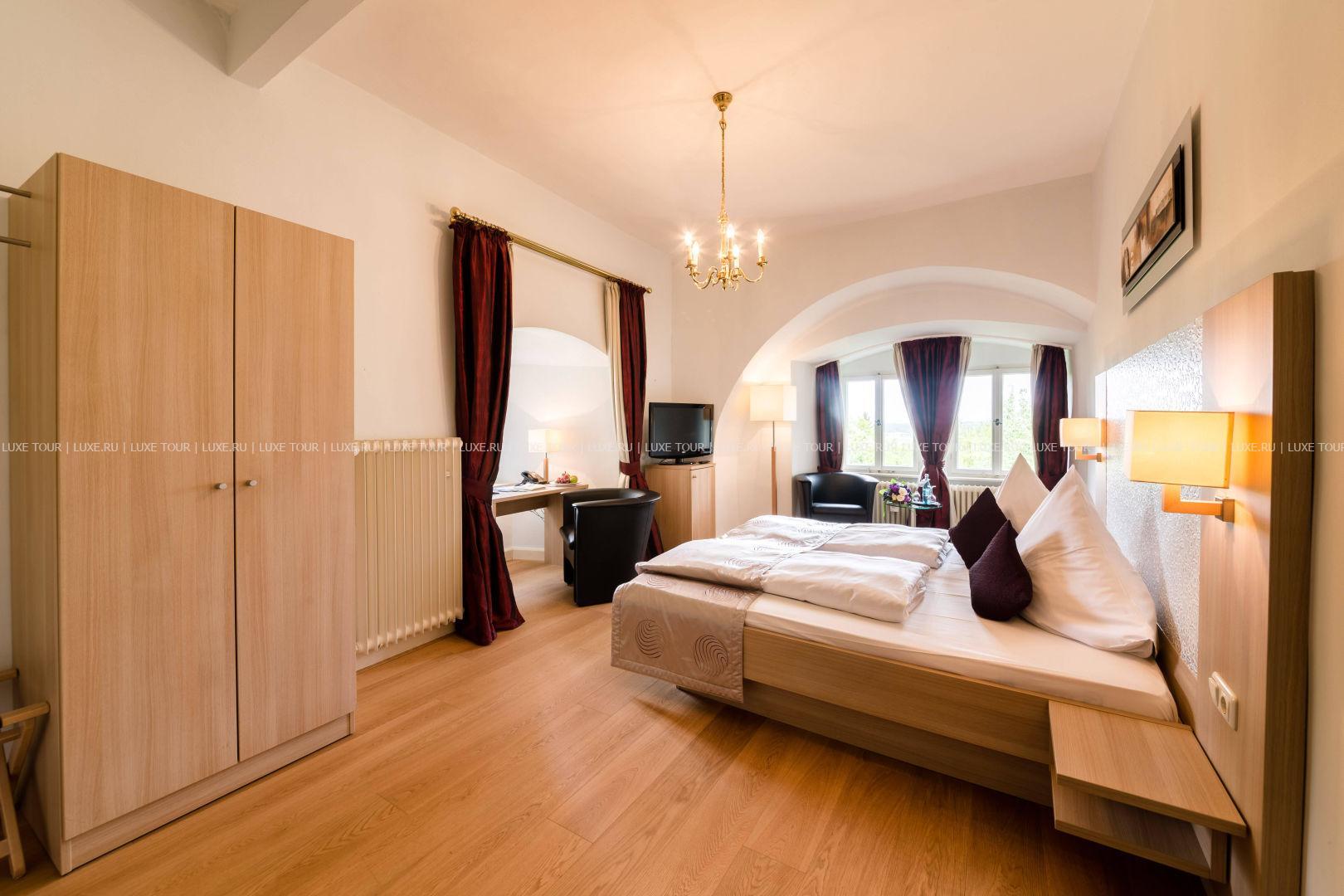 Этот отель располагается в настоящем средневековом замке, впервые упомянутом в исторических источниках еще в начале XIV века в далеком 1306 году. В те времена эти земли, покрытые густыми лесами, принадлежали графине Юте фон Хеннеберг. За многовековую историю замок пережил и полное разрушение в эпоху Крестьянской войны, и смену владельцев, каждый из которых оставлял свой след в архитектуре строения, и религиозные конфликты. А в конце XX века – в 1989-96 годах Schloss Hohenstein был переделан в небольшой уютный отель, окруженный живописным парком в стиле рококо. Здесь на лоне природы, вдали от шумных городов, Вы сможете прикоснуться к старинным монументам, почувствовать очарование ушедших эпох и насладиться полноценным отдыхом. Этот отель также может стать идеальным местом для празднования свадьбы или юбилея в неподражаемой романтической обстановке.