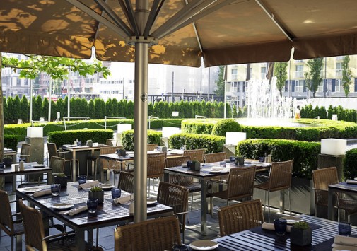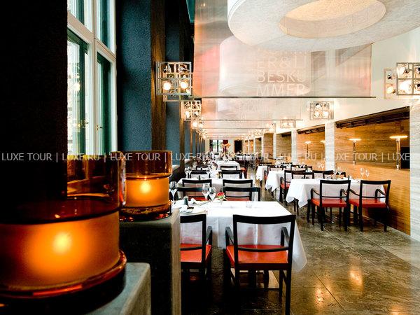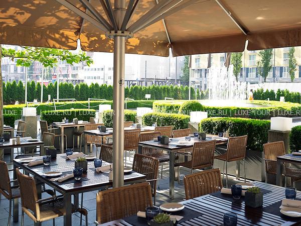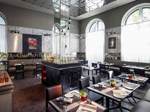 Стильный лаундж-бар Isar с библиотекой и открытой террасой располагает к приятному отдыху за напитком.