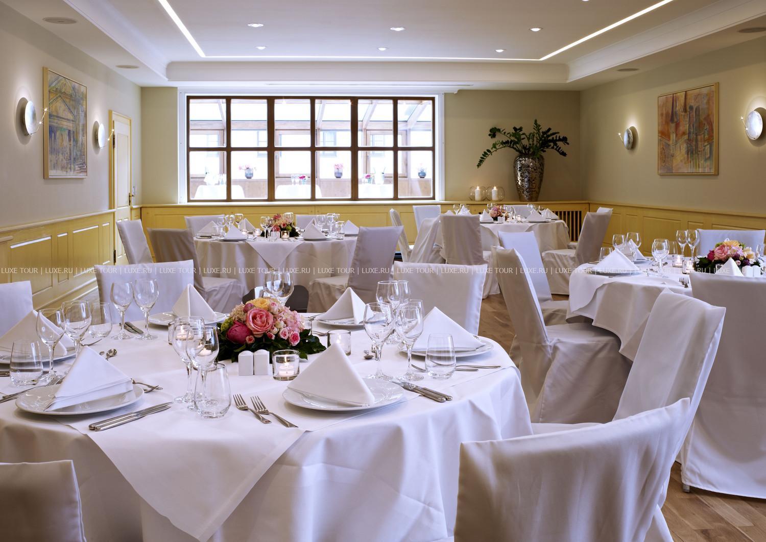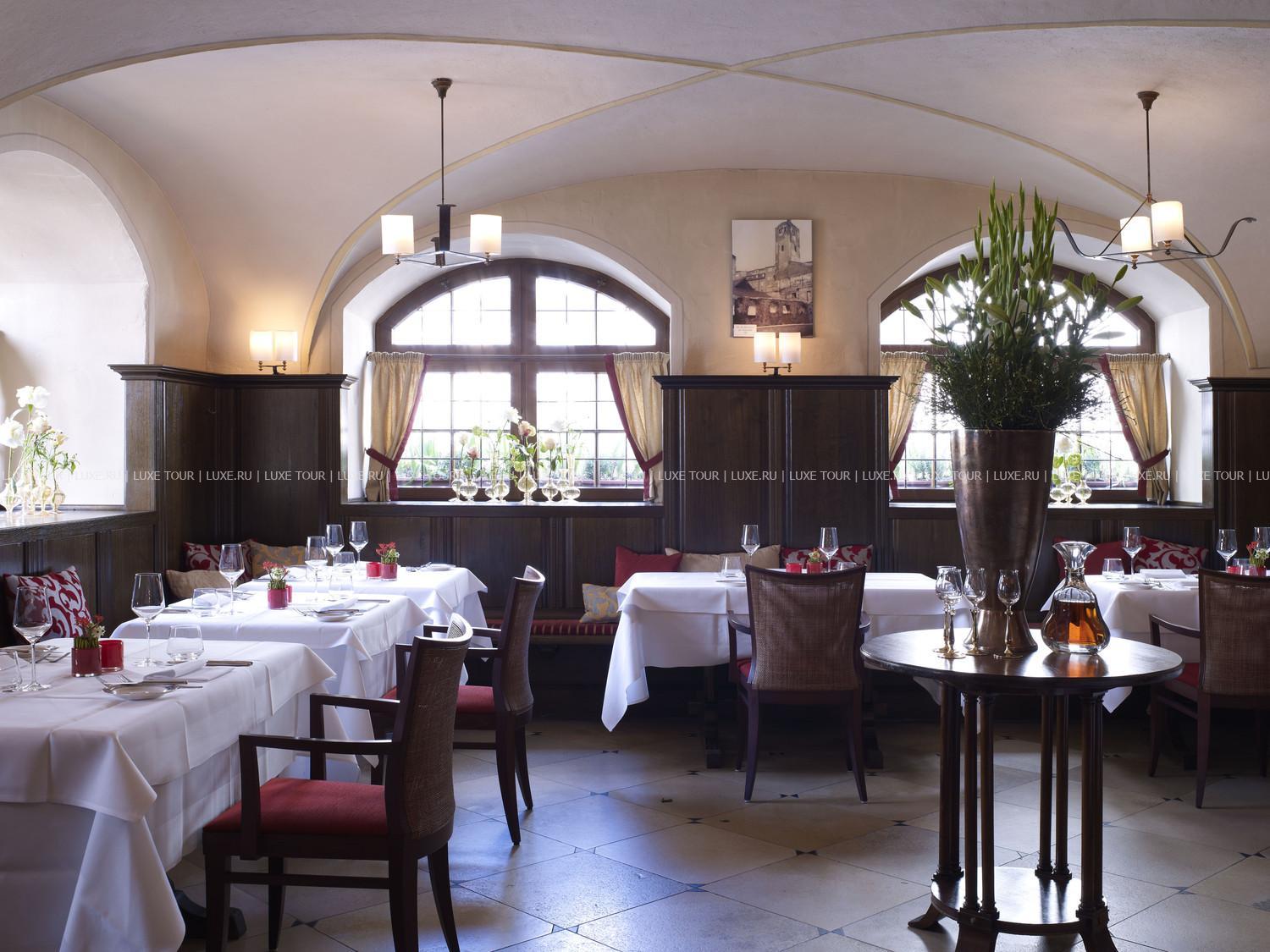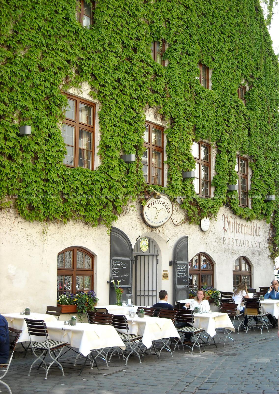Ресторан Pfistermühle предлагает баварскую кухню, вина из Франконии и других стран, а также пиво Ayinger. Летом накрываются столики в саду.