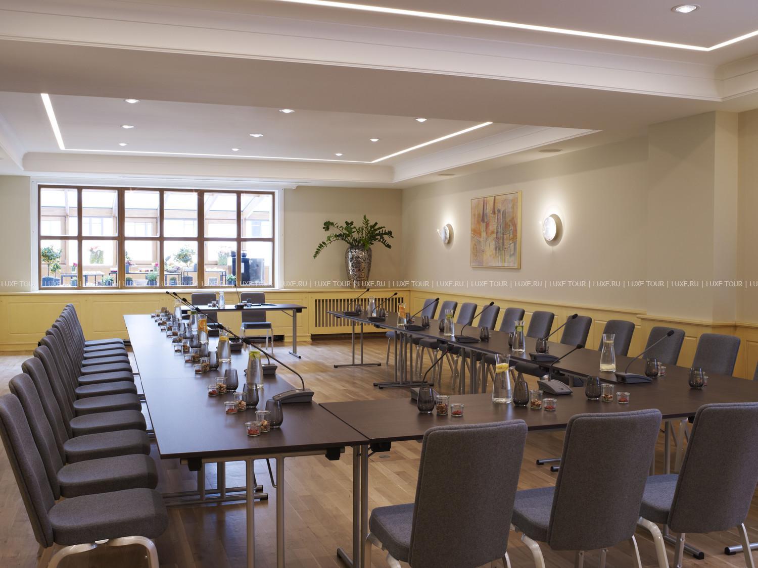 7 помещений для проведения конференций, семинаров вместимостью 10, 50 и 140 человек, а также банкетные залы. Подземный гараж (80 мест), глаженье белья, прачечная, услуги парикмахера, обмен валюты.